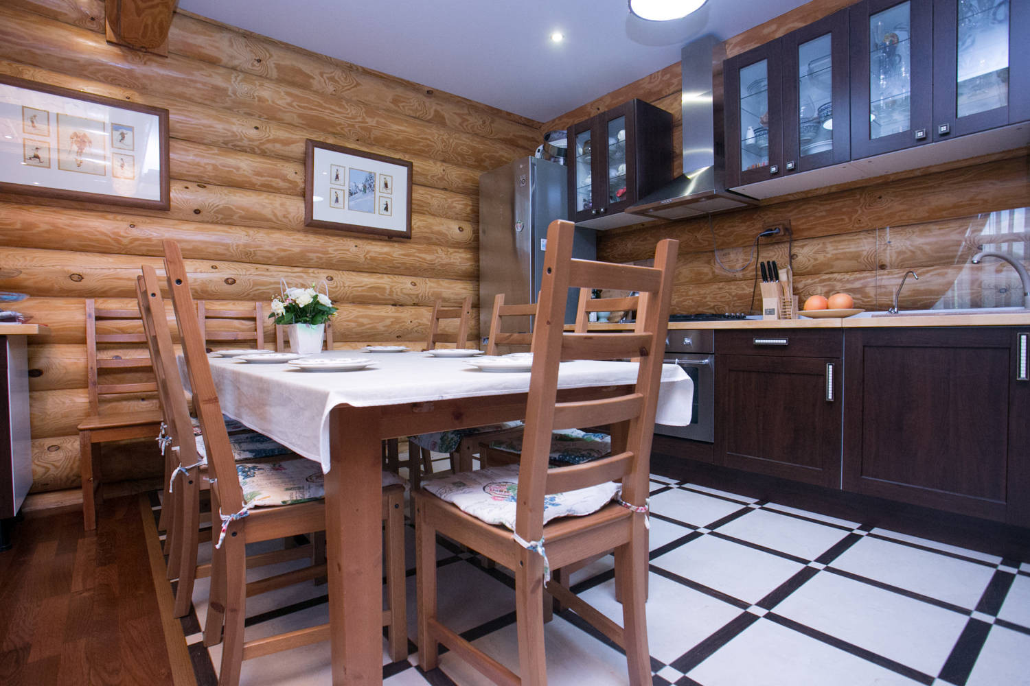 В доме огромная кухня-гостиная, из окна которой открывается великолепный вид на горы,