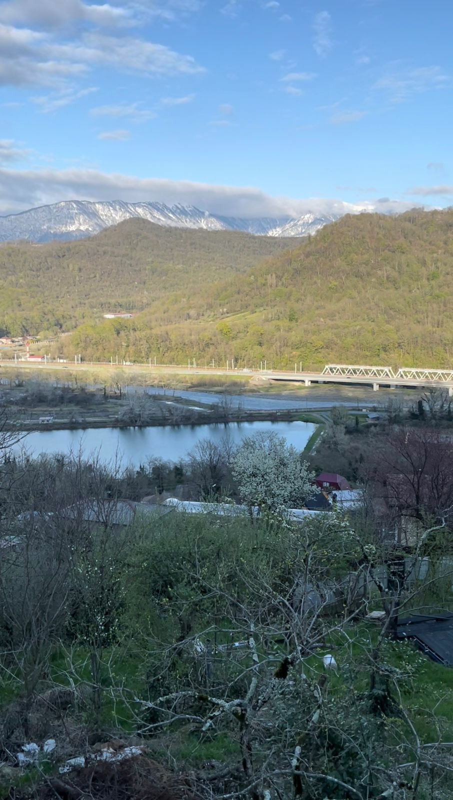 Красивый вид на Мзымту, горы, форелевое хозяйство.