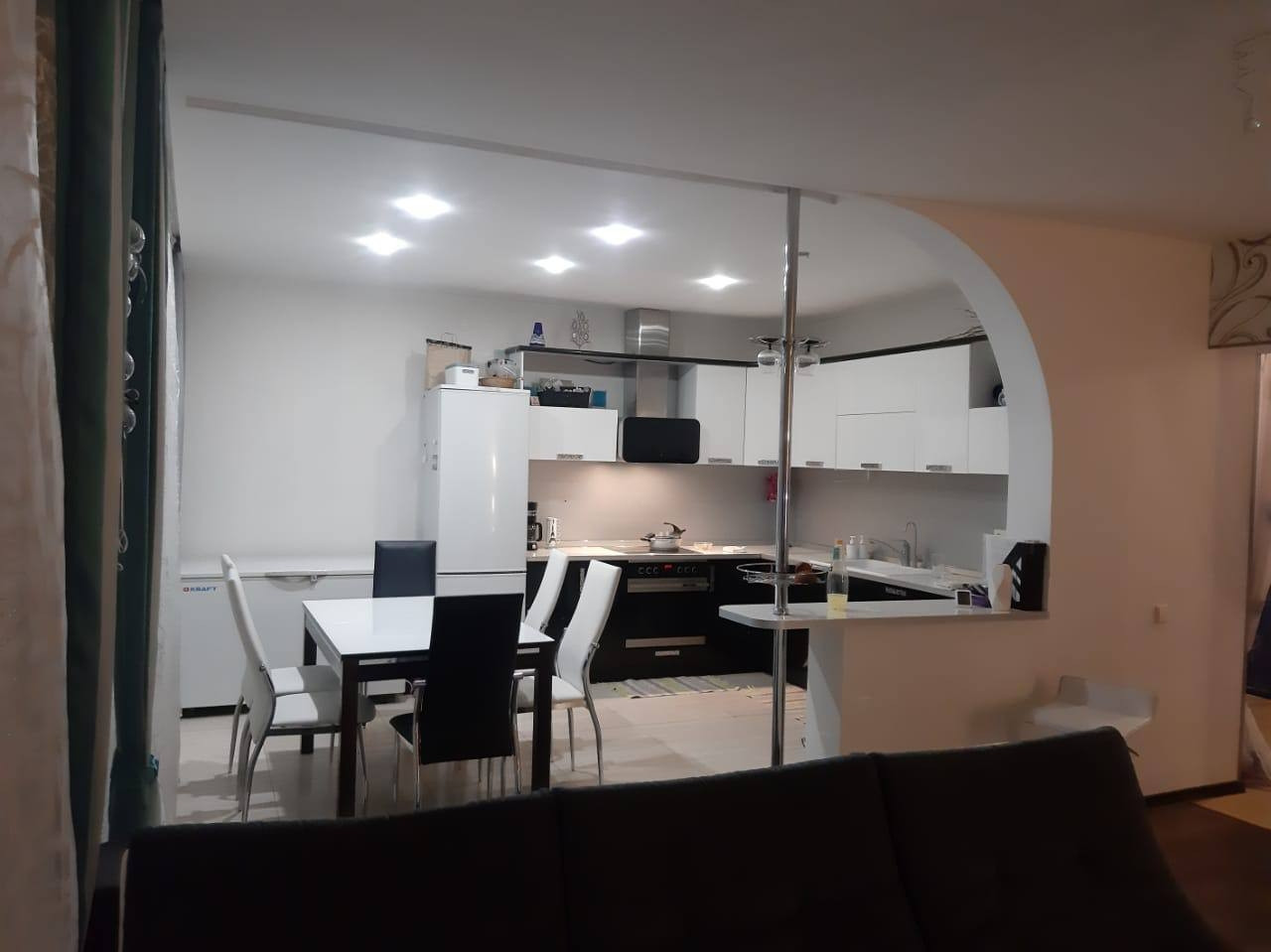 - большой кухонный гарнитур со встроенной техникой