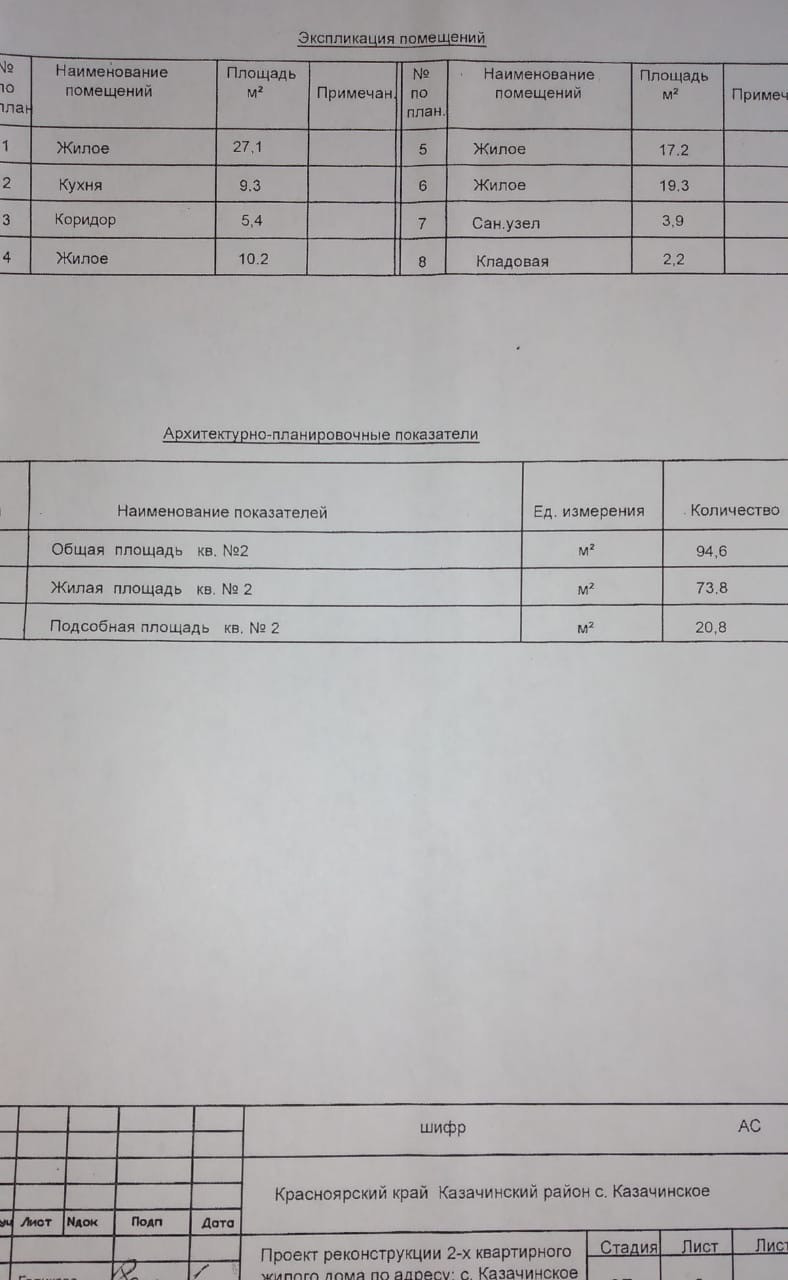 3-комнатная квартира, 94.6 м2, этаж 1 / 1, на продажу в селе Казачинском, улица Чкалова, 18