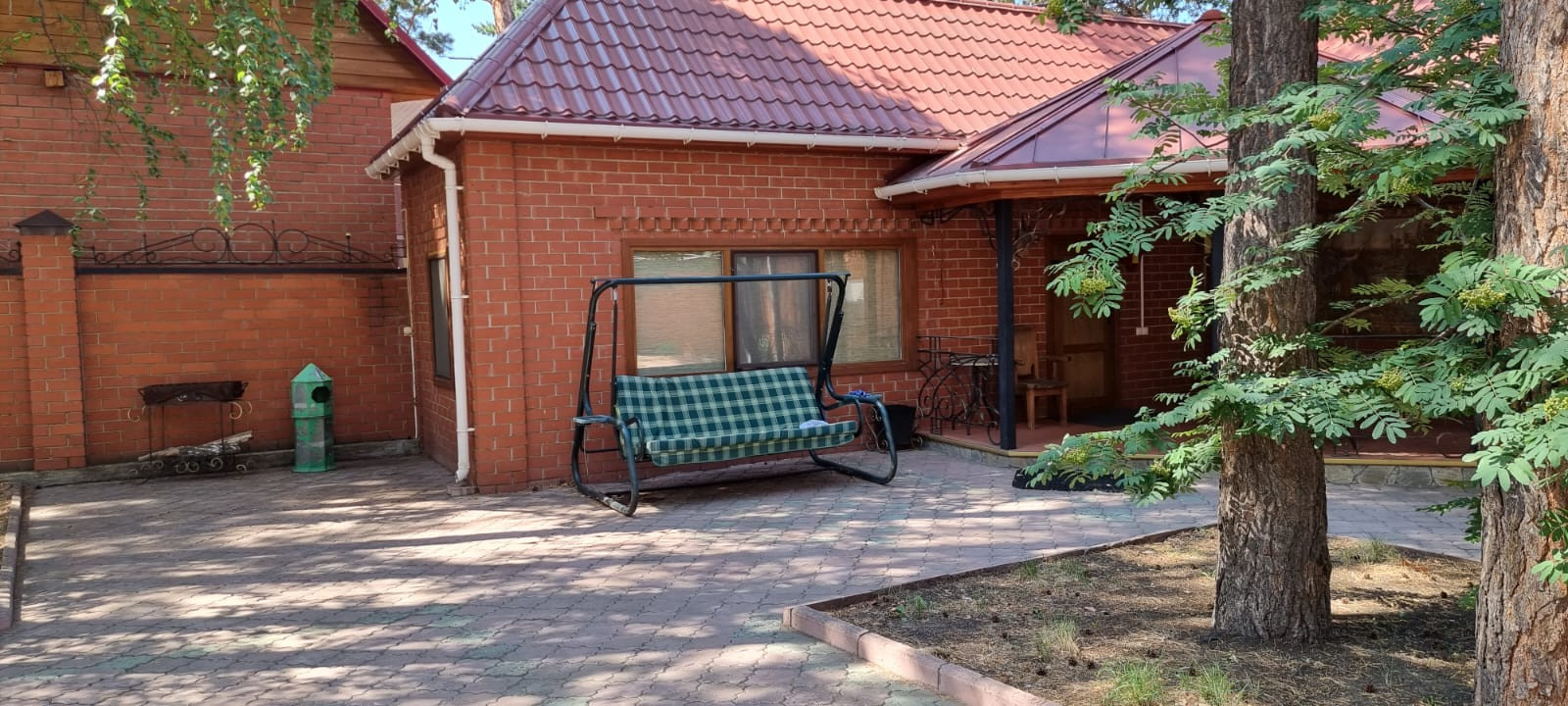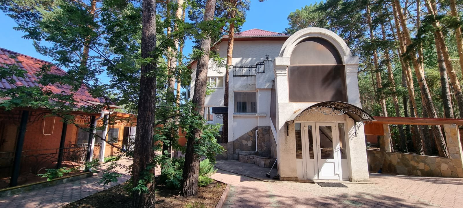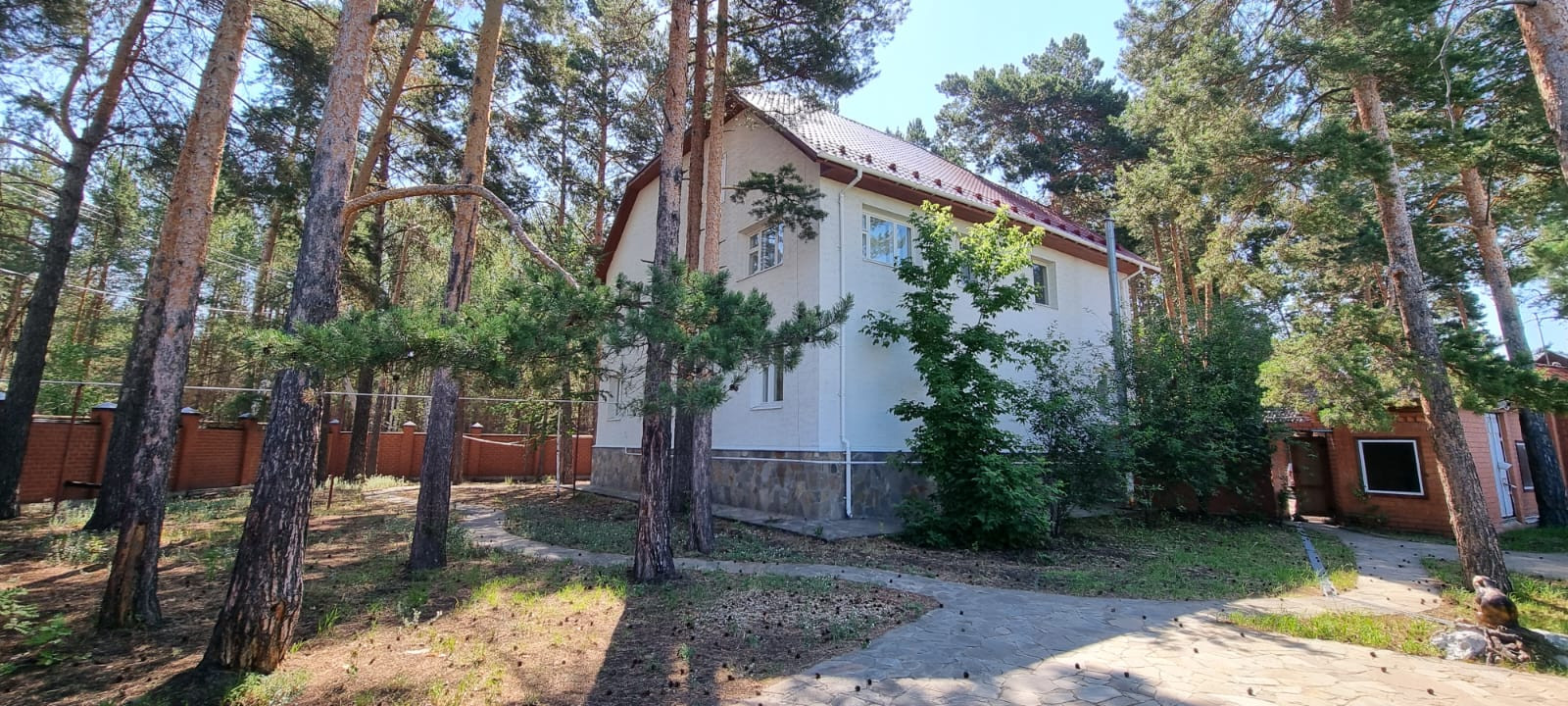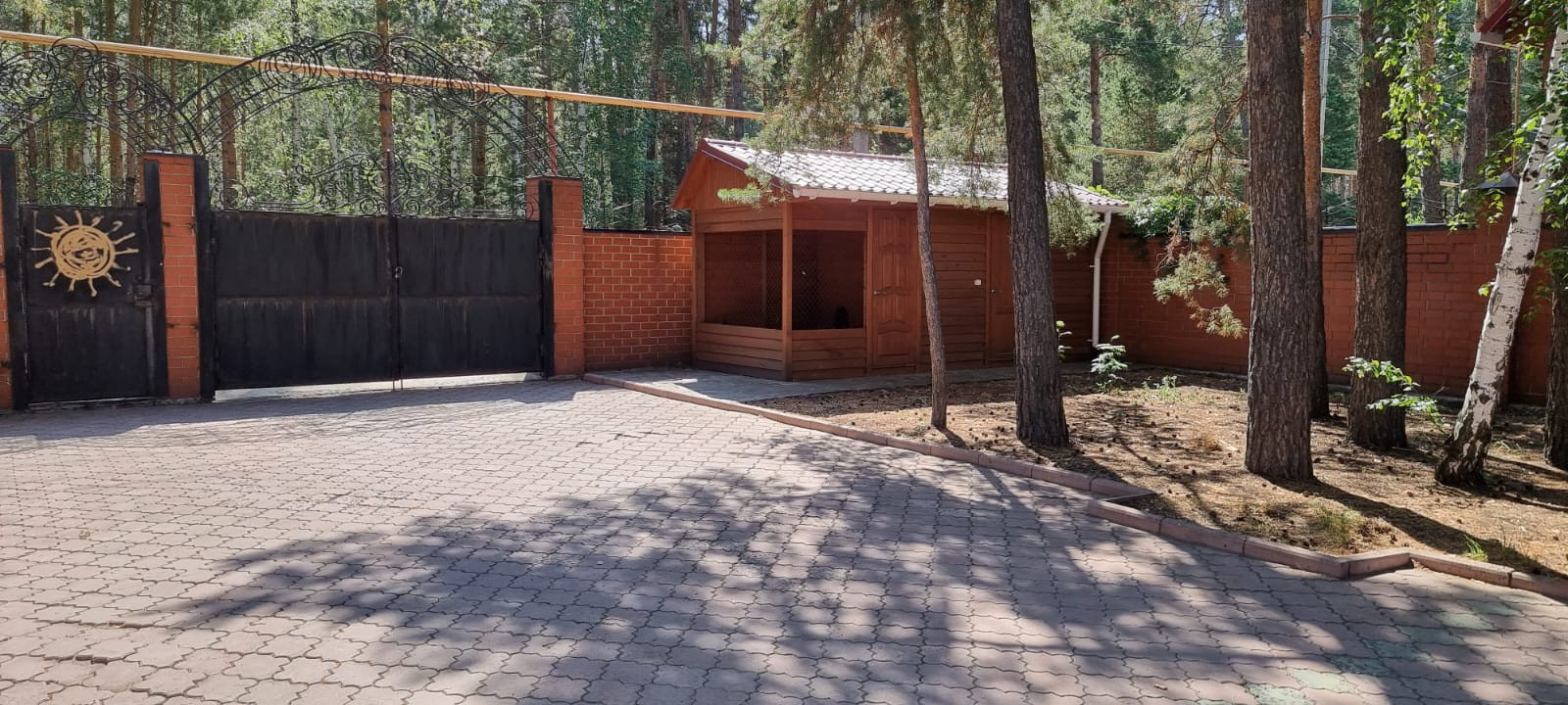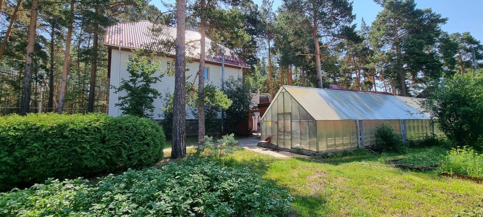 Земельный участок отмежеван. На участке много сосен. Большая теплица 110 кв.м. Скважина 36м. Вольер для собаки. Асфальт до дома. Двор выложен тротуарной плиткой.