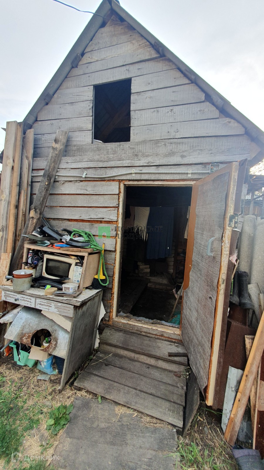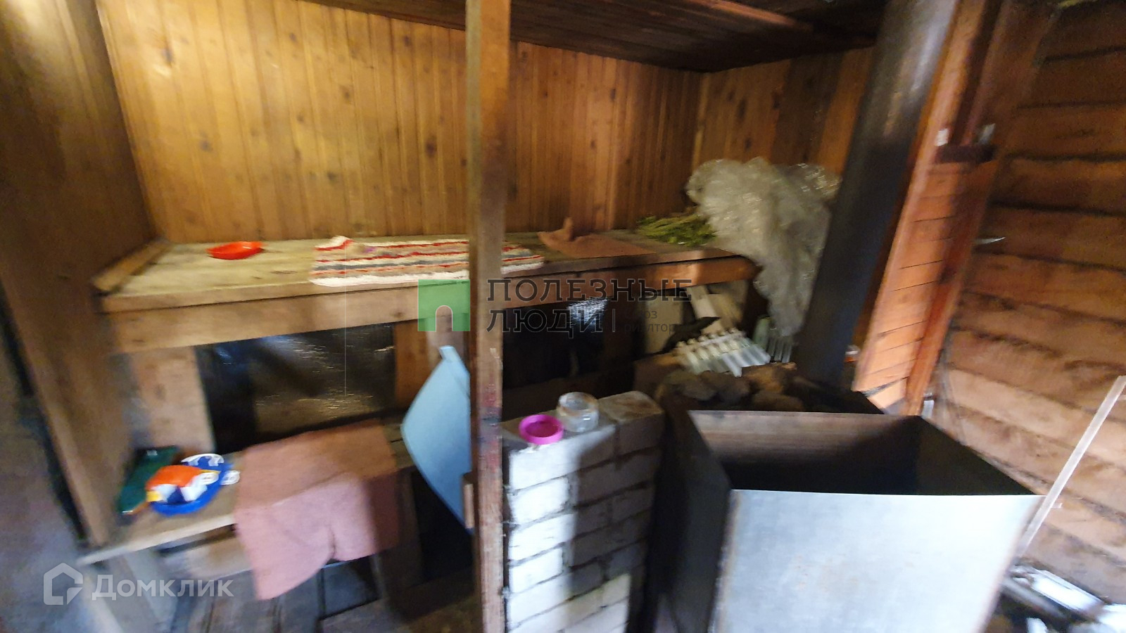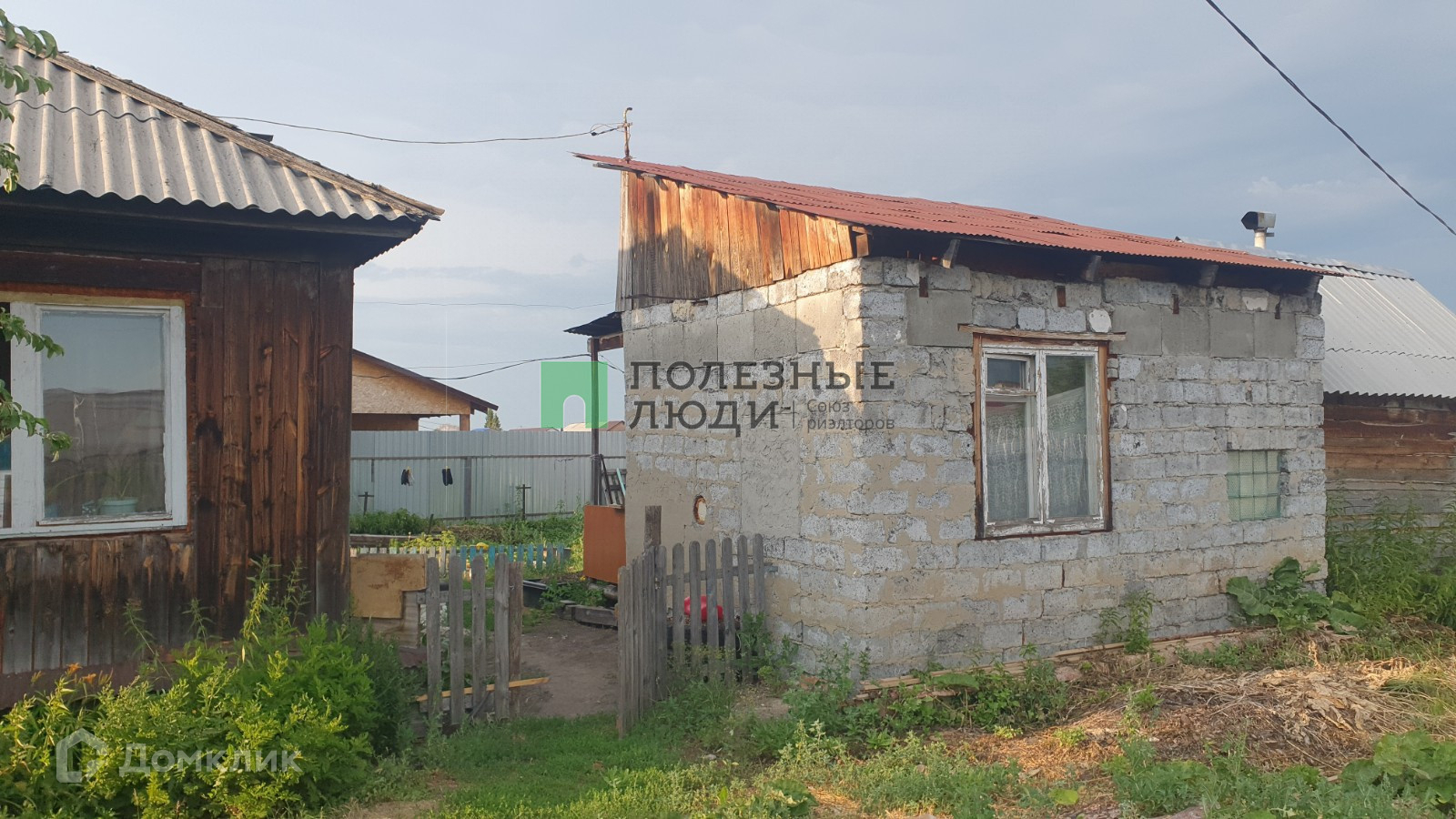 На участке баня из бруса, времянка из шлакоблока, скважина с питьевой водой.