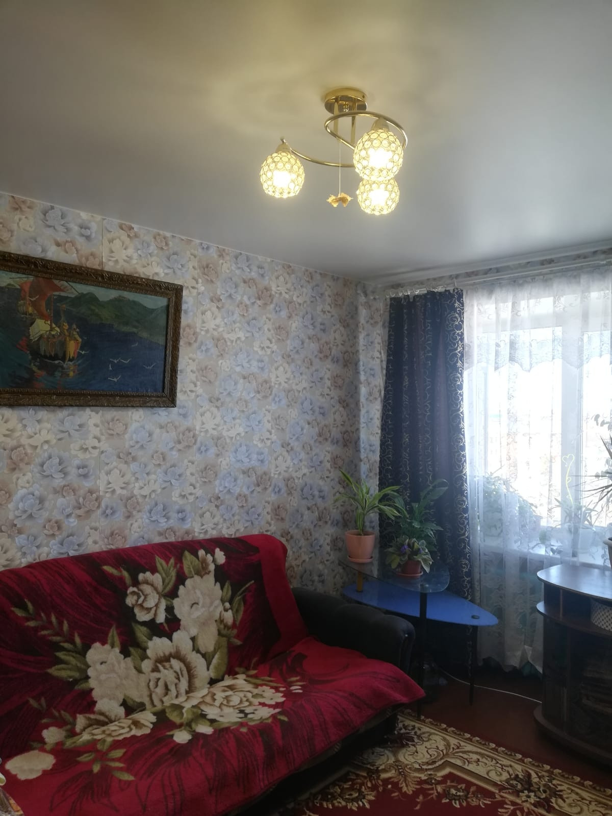 В квартире сделан косметический ремонт( натяжной потолок в большой комнате и в прихожей, во всех комнатах установлены пластиковые окна, большой водонагреватель).