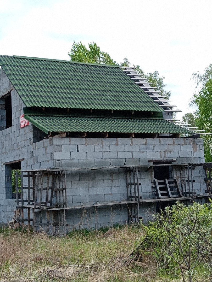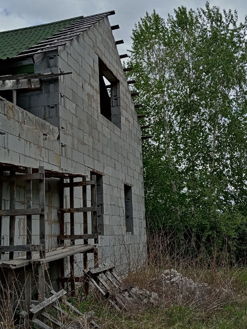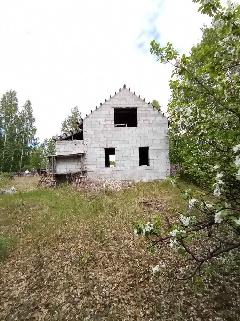 Продаю дом 85 кв.м. незавершенного строительства на берегу озера.  Возведён каркас и заведён под крышу ондулин. Грибные места.