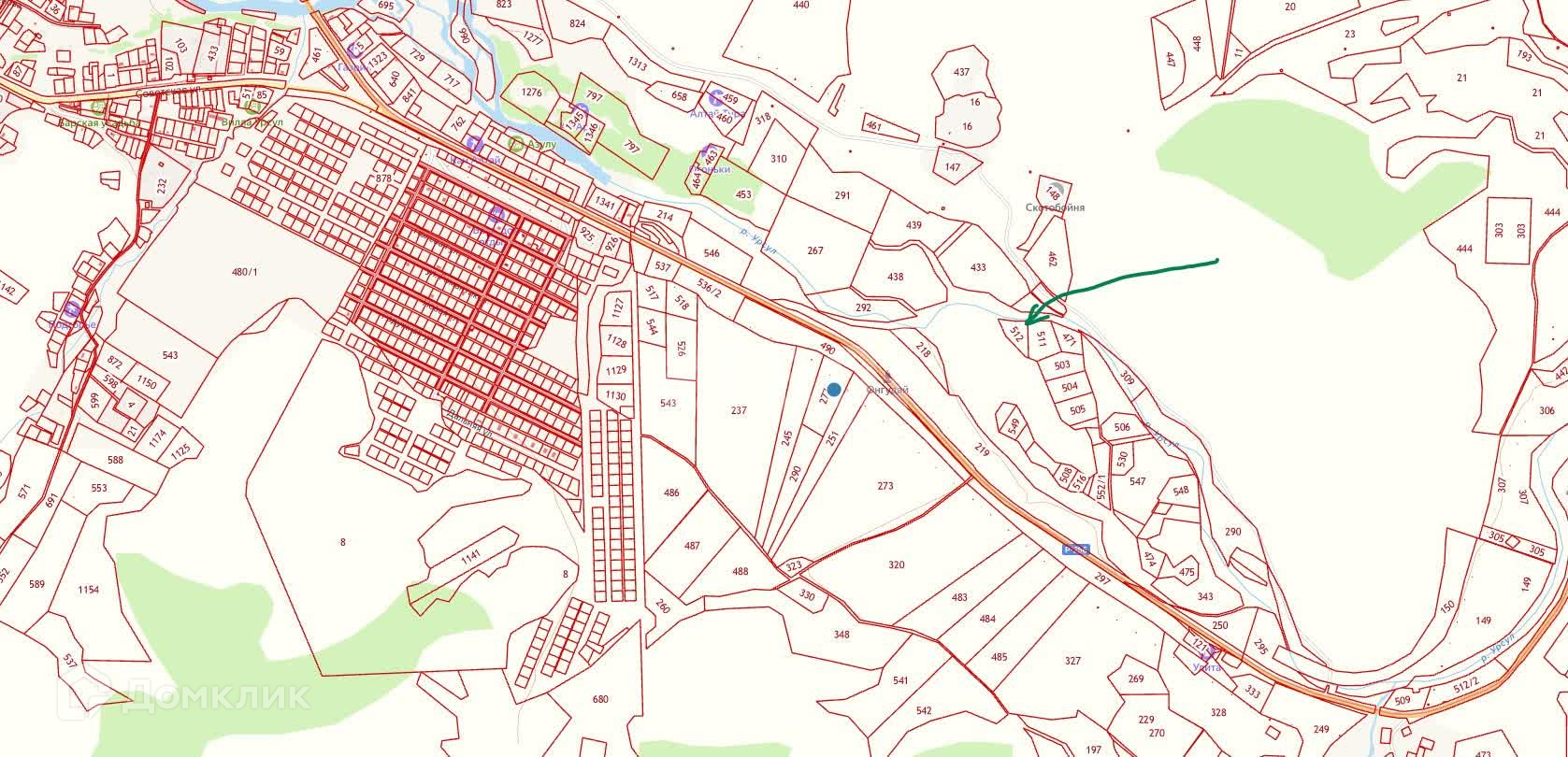 Участок омывается с двух сторон рекой Урсул, на участке большое количество разновидностей деревьев и кустарников.