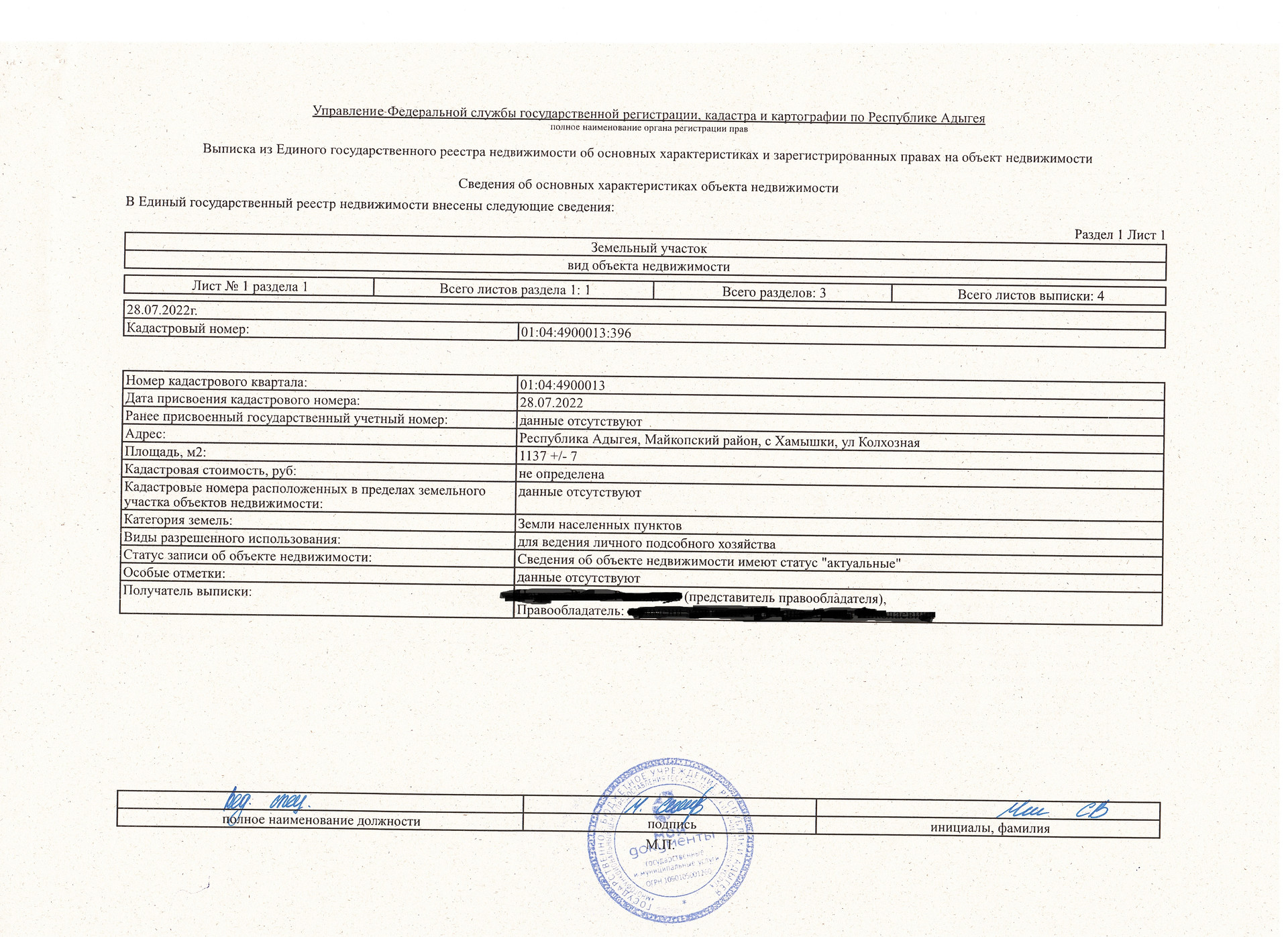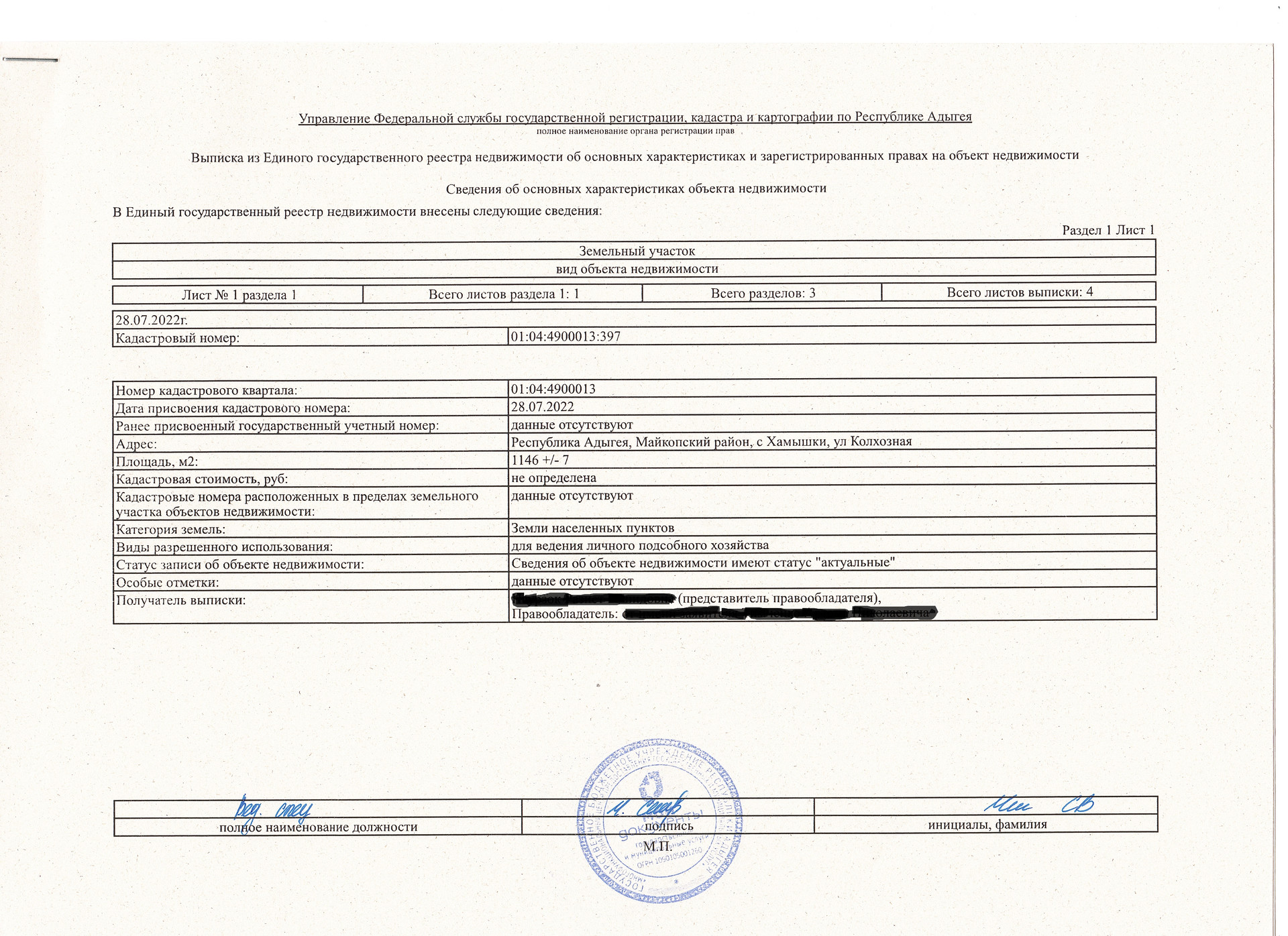 Адыгея, село Хамышки, Колхозная улица, 9
