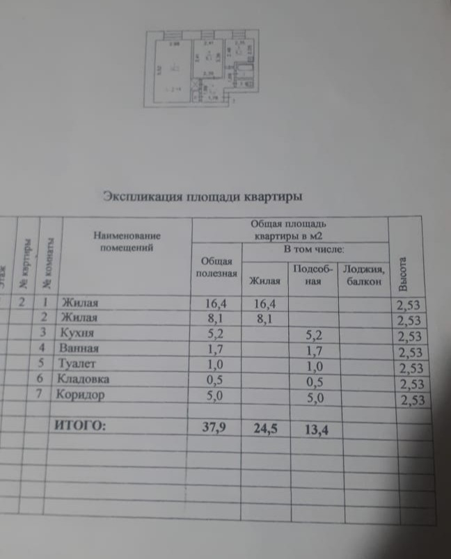 Общая площадь 37.9 м2