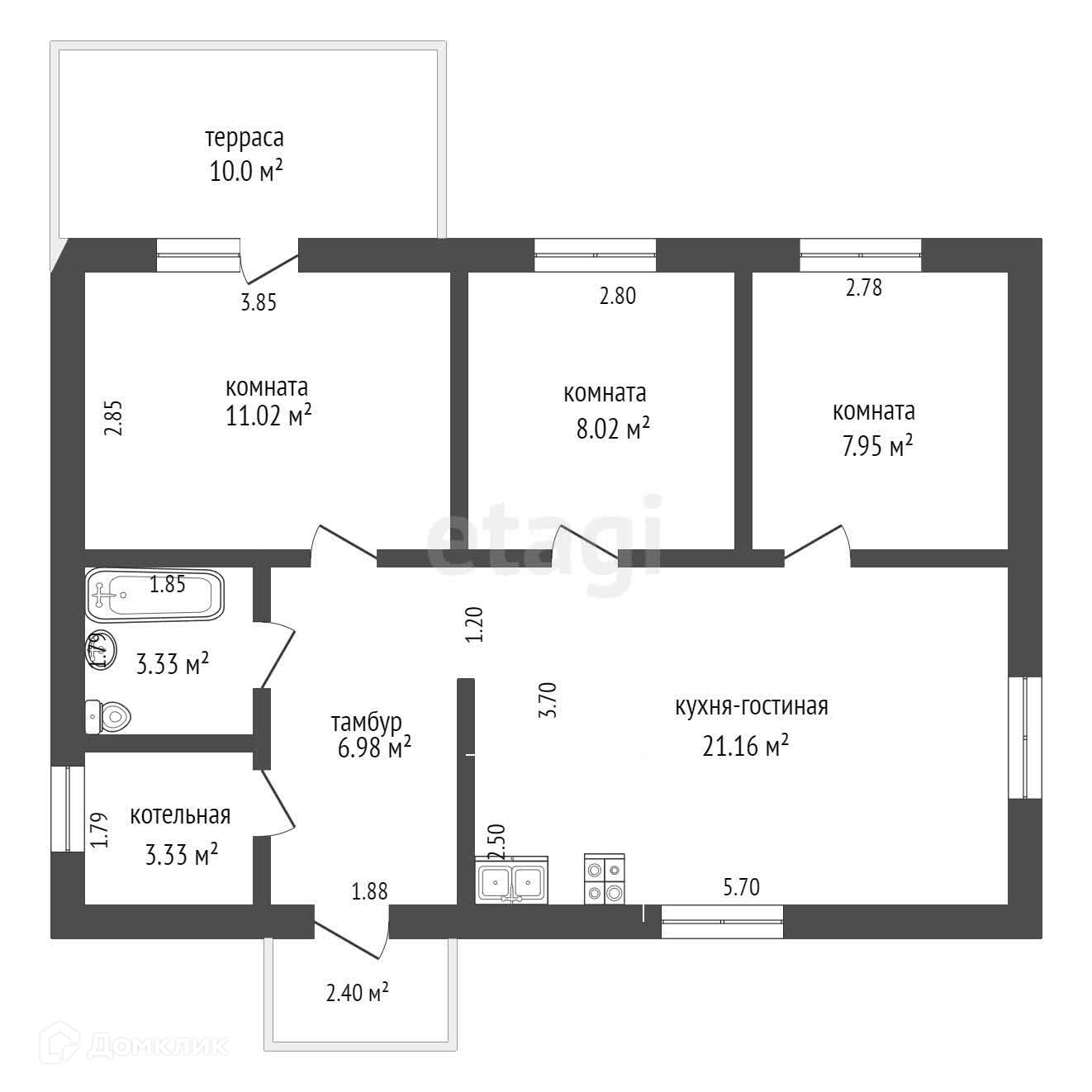 Общая площадь 70 м2