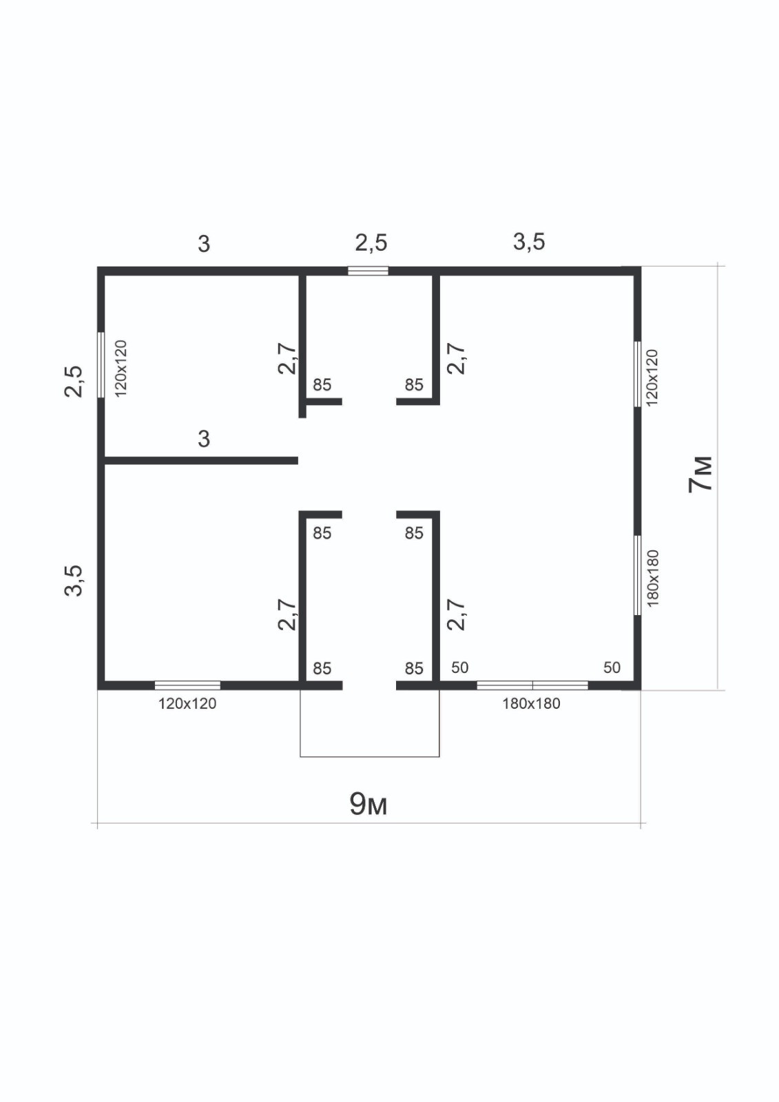Площадь 63 м2 (7х9 м)