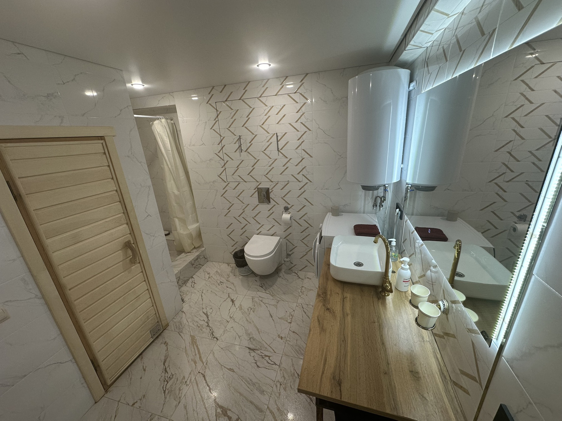 1 эт кухня-гостиная с выходом на террасу, прихожая с/у, сауна тёплый пол