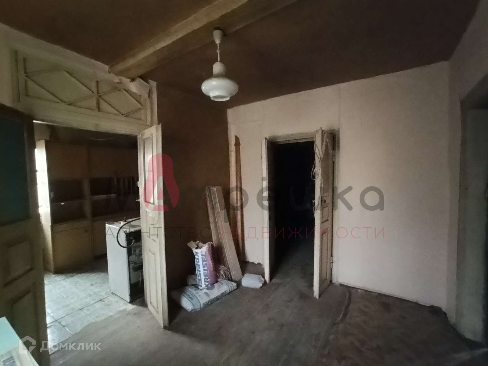 Дом 60 м. кв, свет, газ, вода подведена к границе участка. Дом крепкий, дубовый, обложен кирпичем, нужен косметический ремонт.