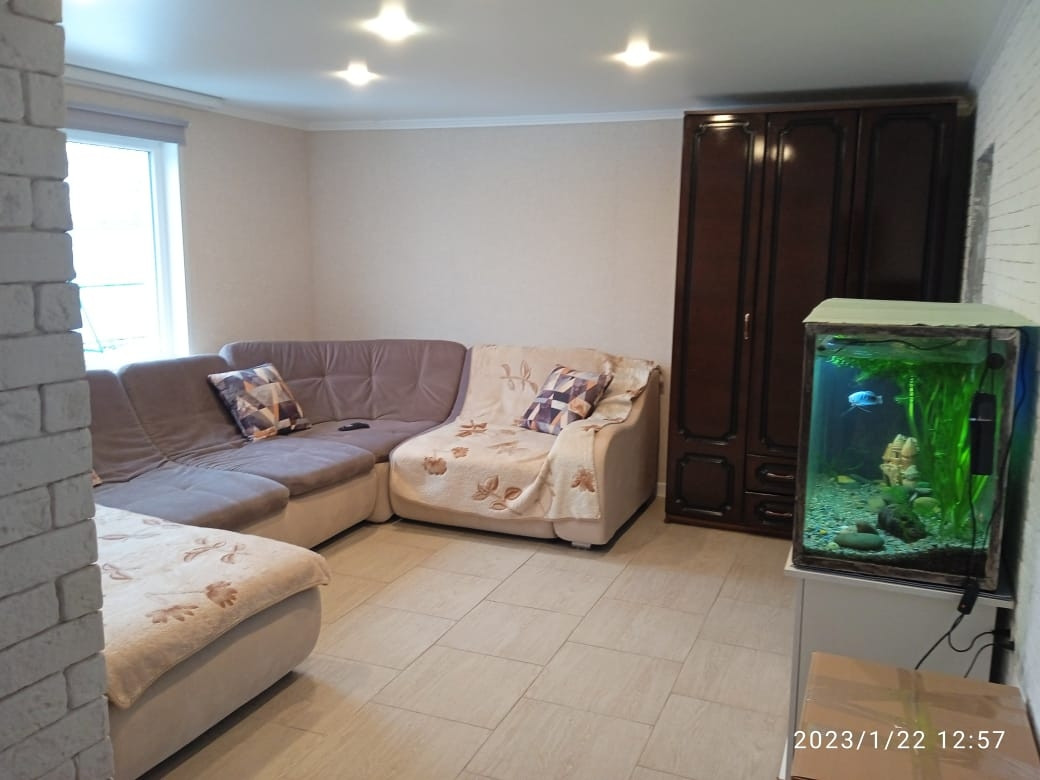 дом из бревна оштукатурен с наружи и в внутри ,тёплы пол  сделан ремонт ,вана туалет ,двор закрыт ,рядом еще земля 12 соток под сад огород,