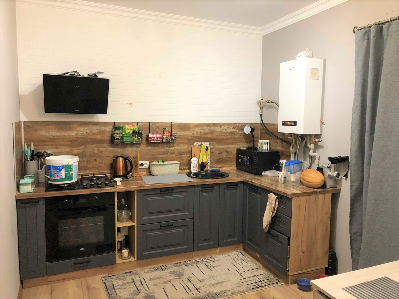 Планировка представляет собой две изолированные комнаты, ванная комната, кухня -гостиная, холл. Кухонный гарнитур остается при продаже новым жильцам. Все коммуникации подключены и функционируют. Установлен двухконтурный газовый котел.