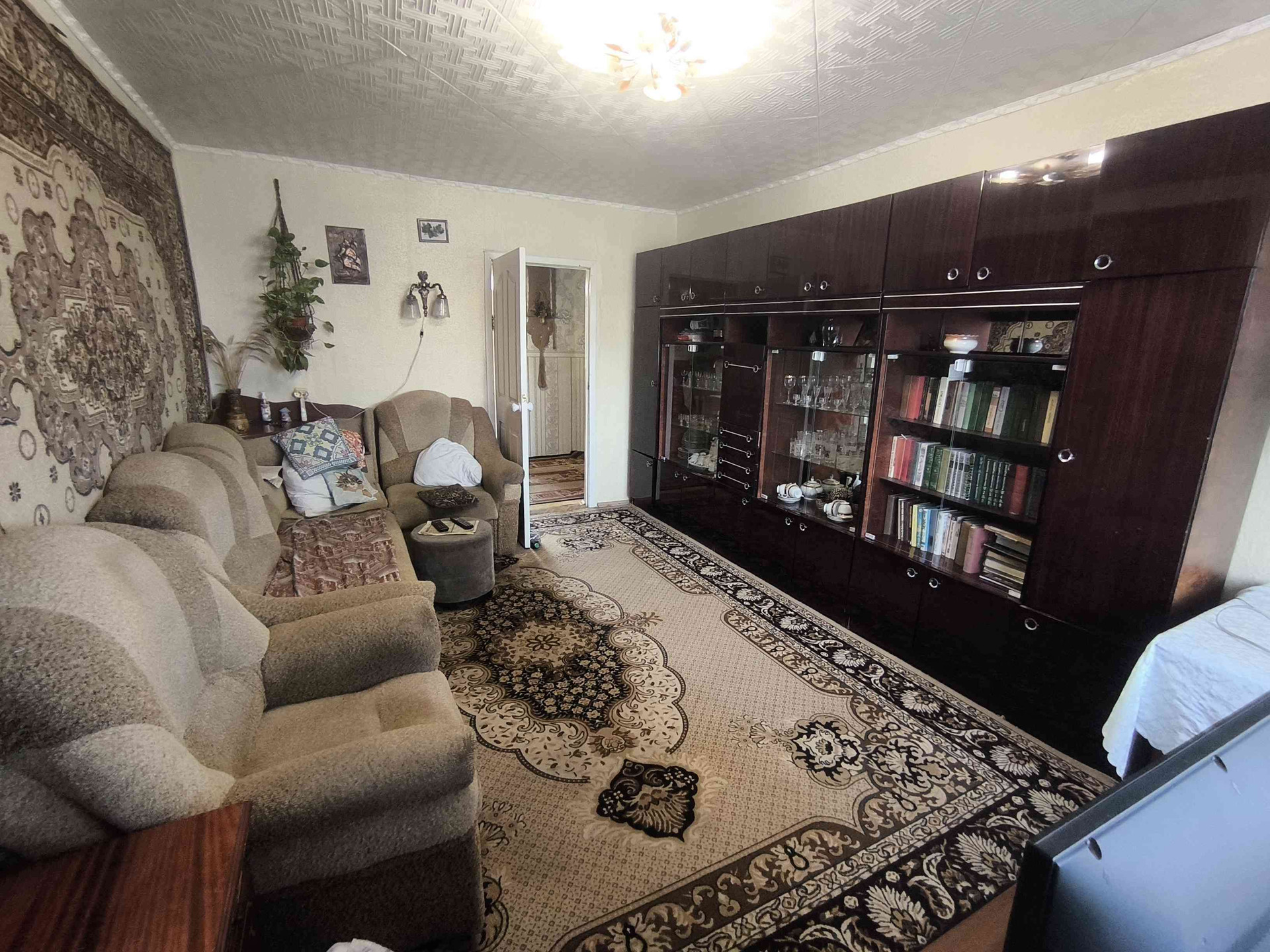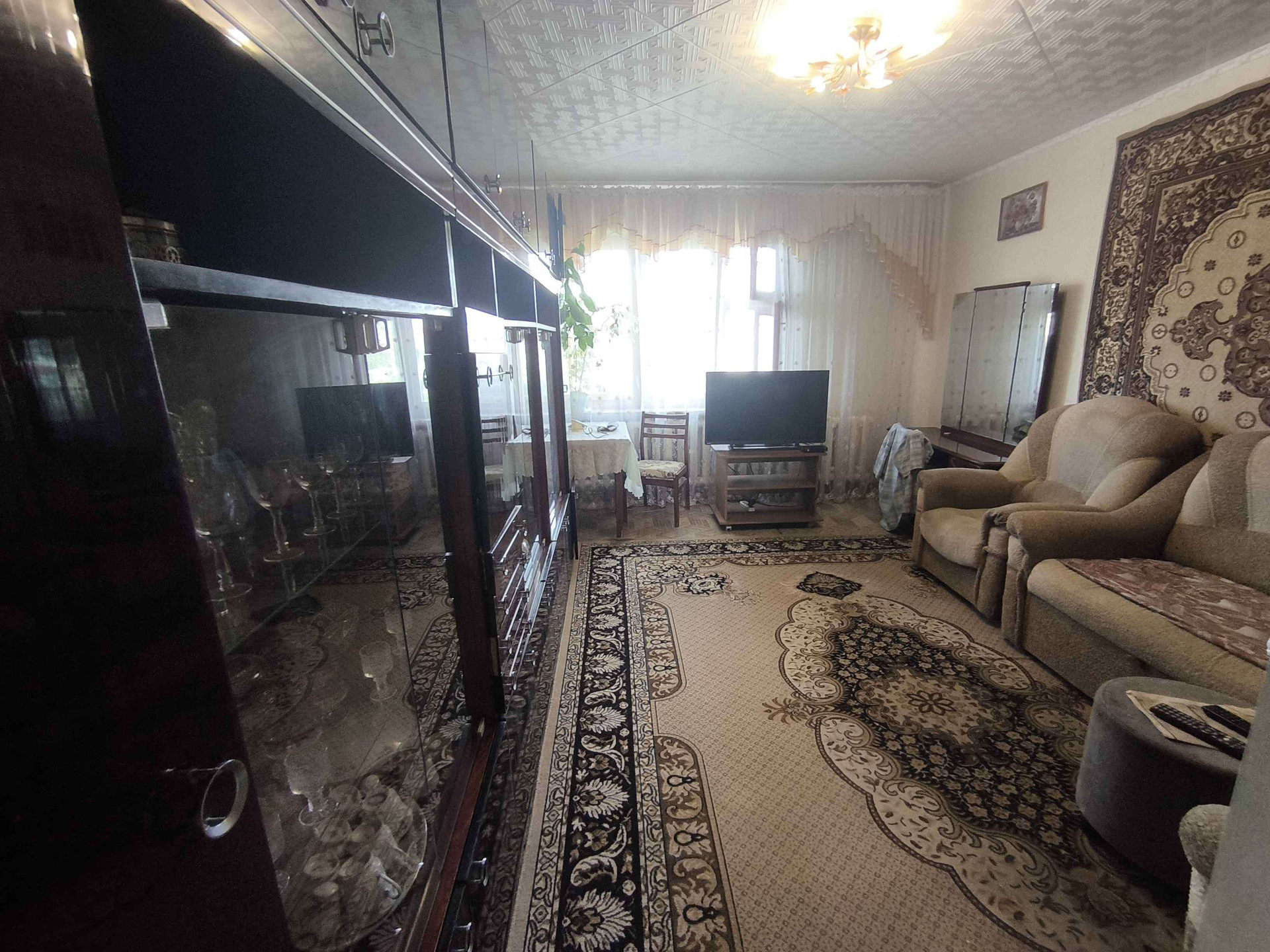 Потолки ровные(наклеена потолочная плитка)