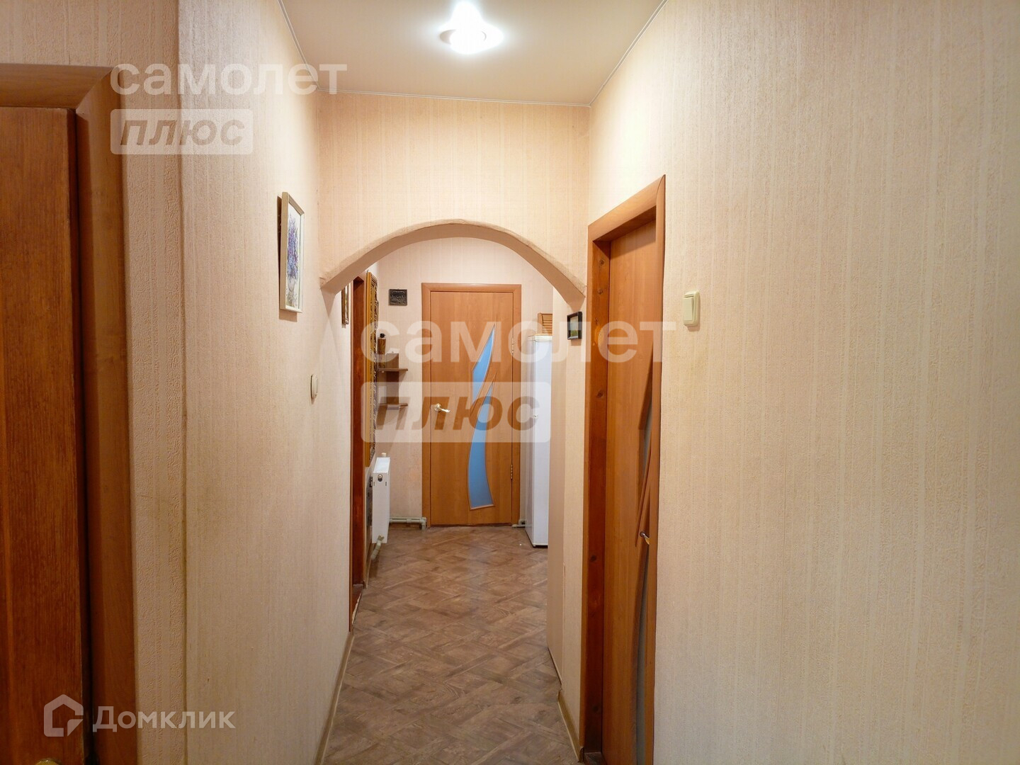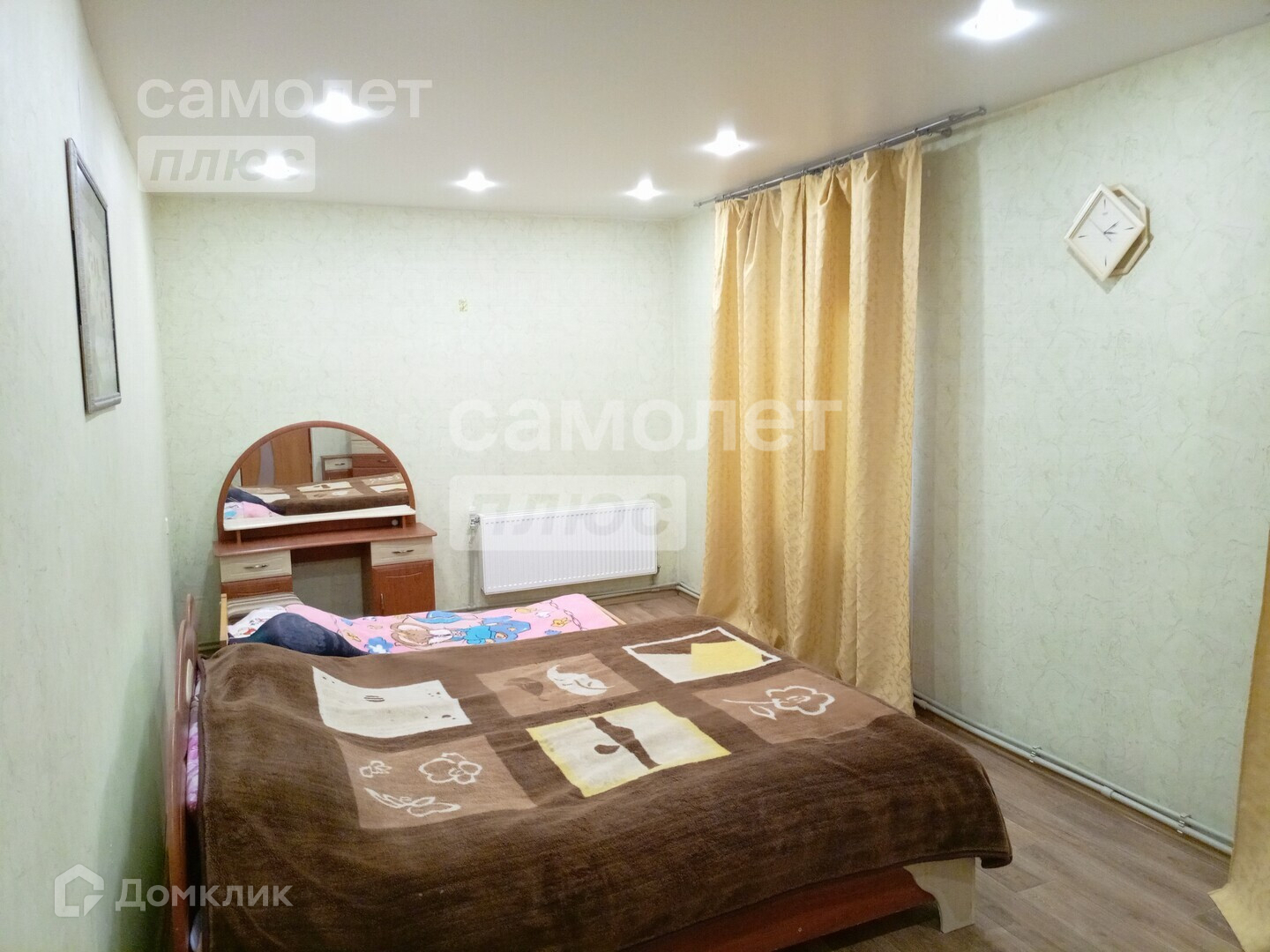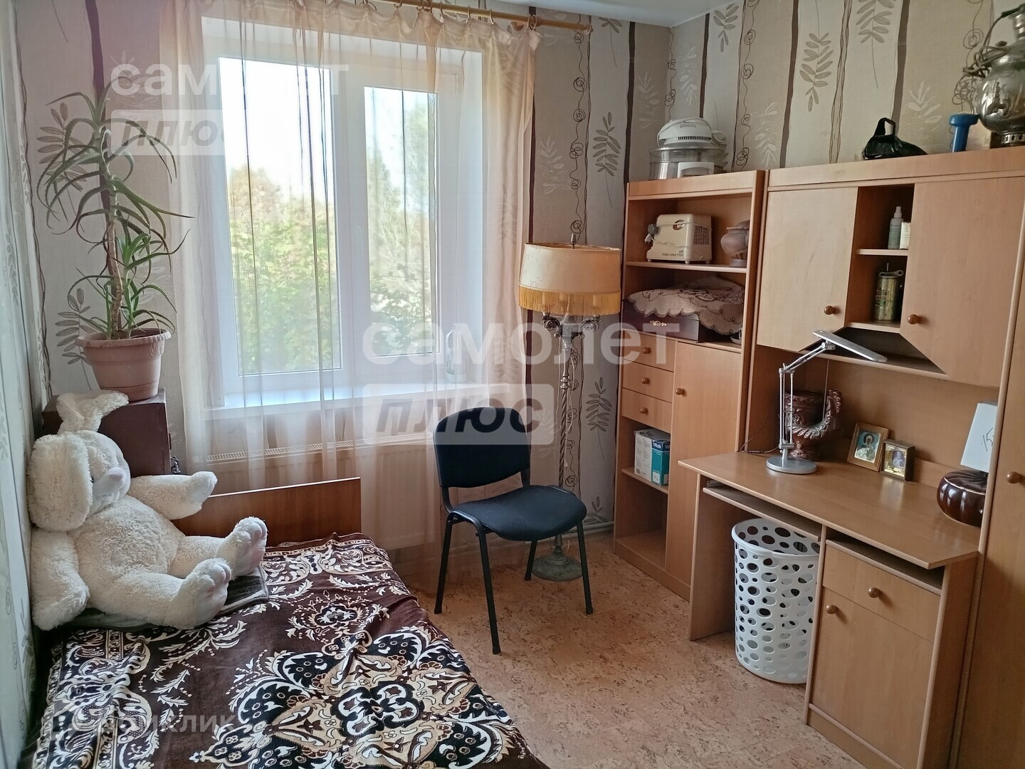 В доме сделан косметический ремонт. Выравнены стены, наклеены обои светлых тонов, уложен новый линолеум, натянуты потолки.