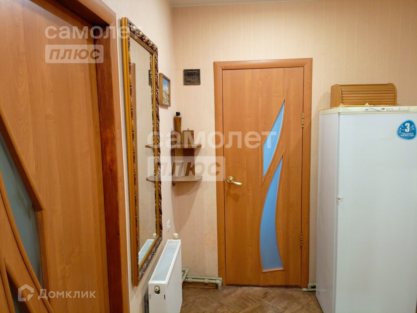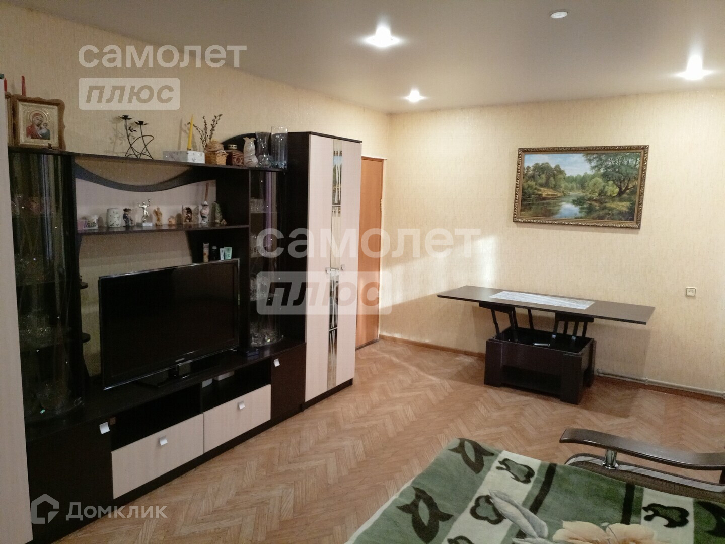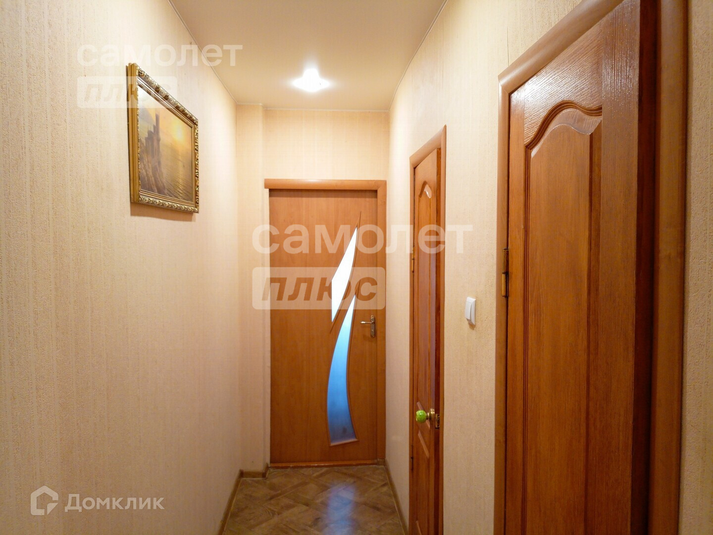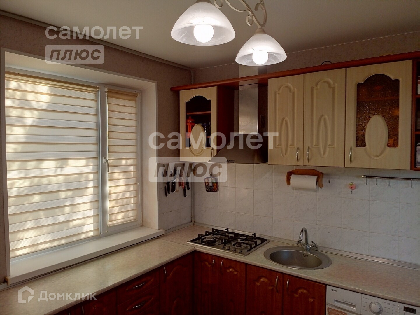 В доме сделан косметический ремонт. Выравнены стены, наклеены обои светлых тонов, уложен новый линолеум, натянуты потолки.
