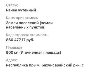 Продаётся видовой участок от собственника Цена ниже рынка без торга Самостоятельный осмотр Адрес указан точный Кадастровый номер 90:01:120301:713 Крайняя жилая улица в селе, коммуникации в пешей доступности |