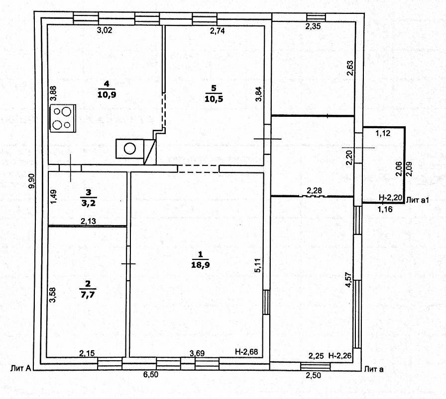 три жилых комнаты, прихожая кухня и веранда.