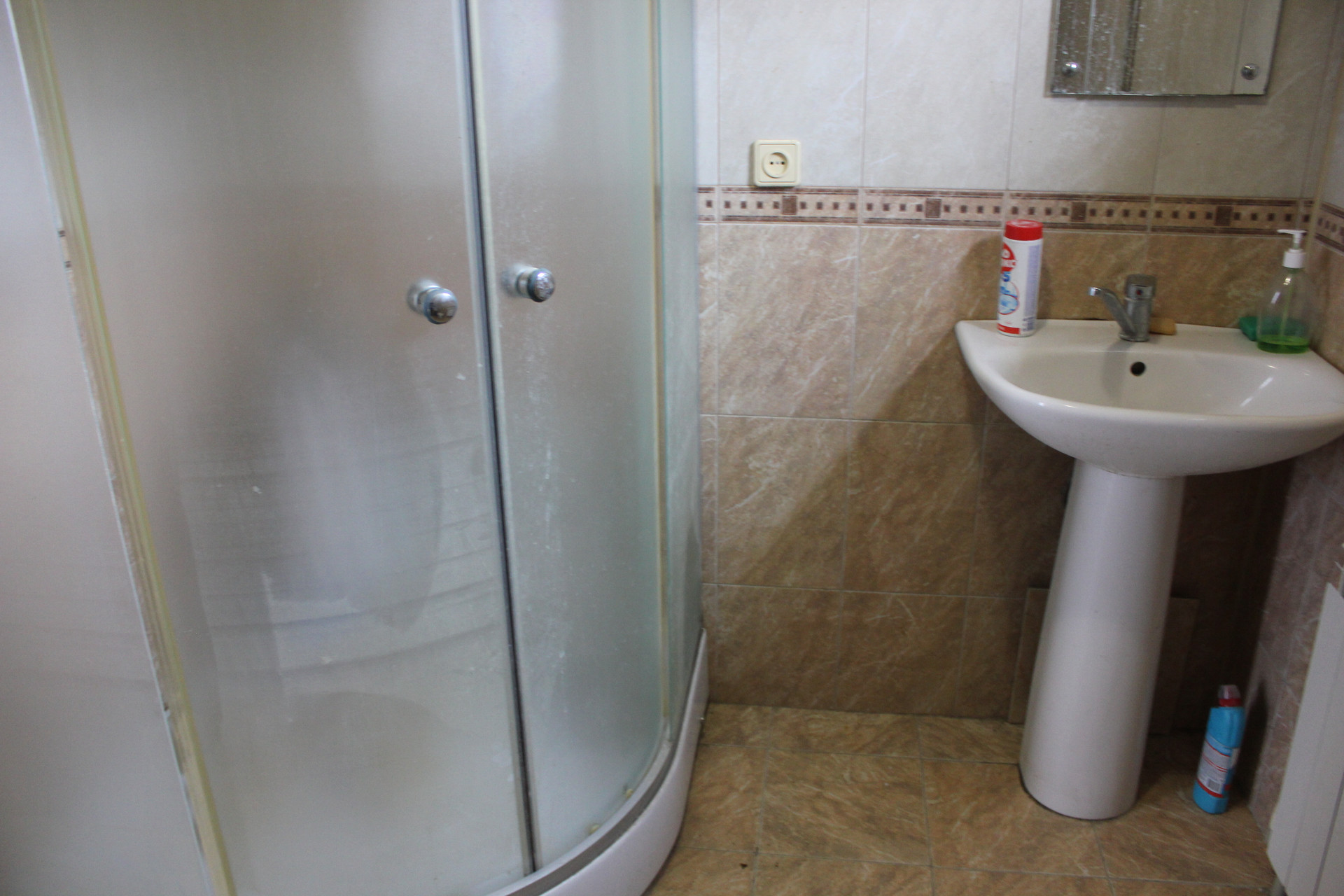 На первом этаже: магазин (не жилое помещение) площадью 55.3 кв.м. На полах-кафель, металлопластиковые окна (зарешеченные). Оборудован пожарной и охранной сигнализацией. Установлены две сплит-системы.