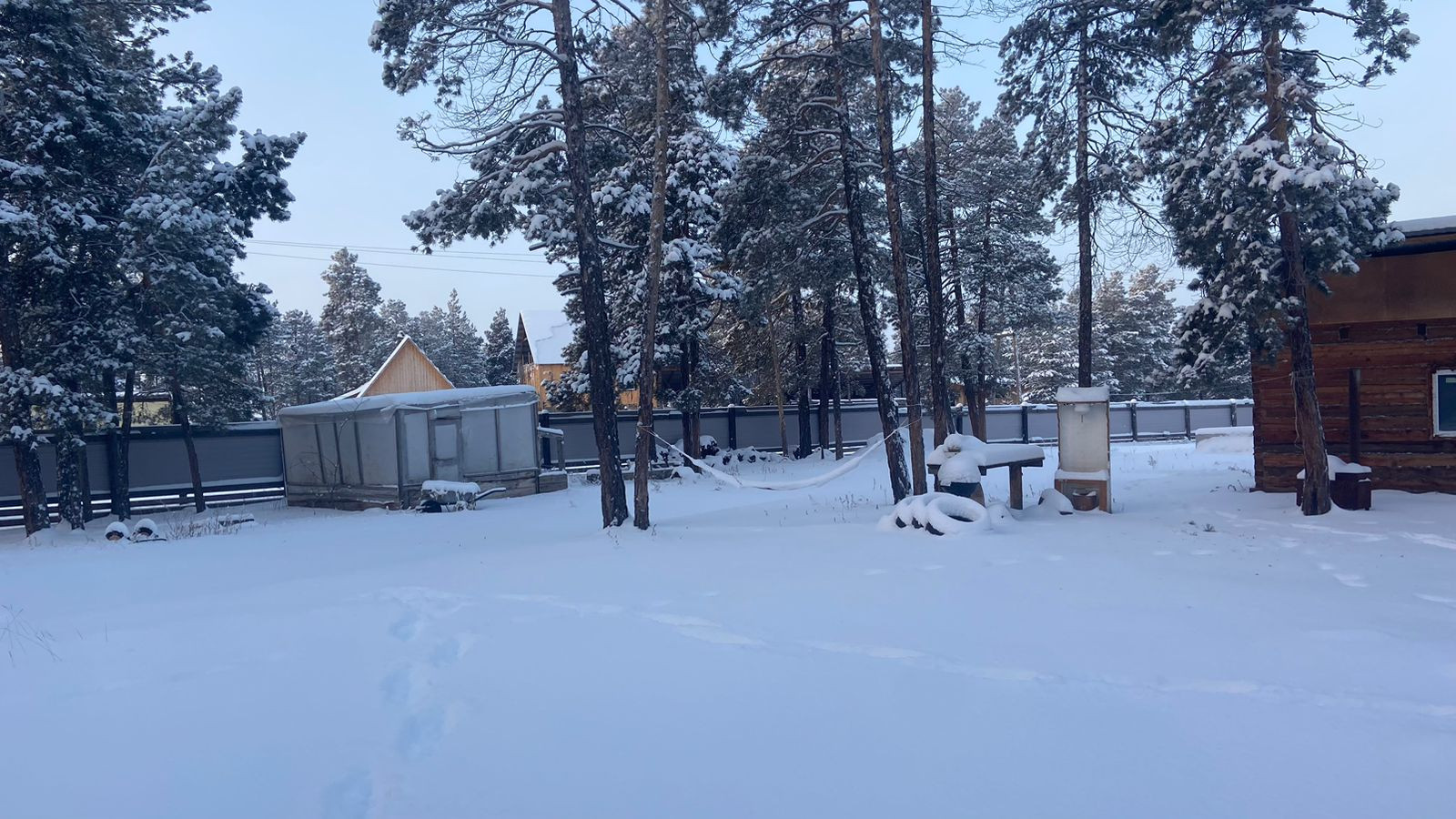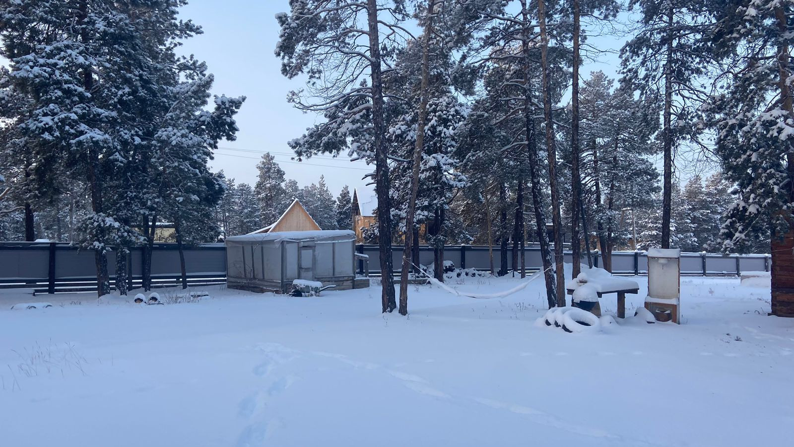 Летом есть водопровод. Забор новый отделан профлистом.
