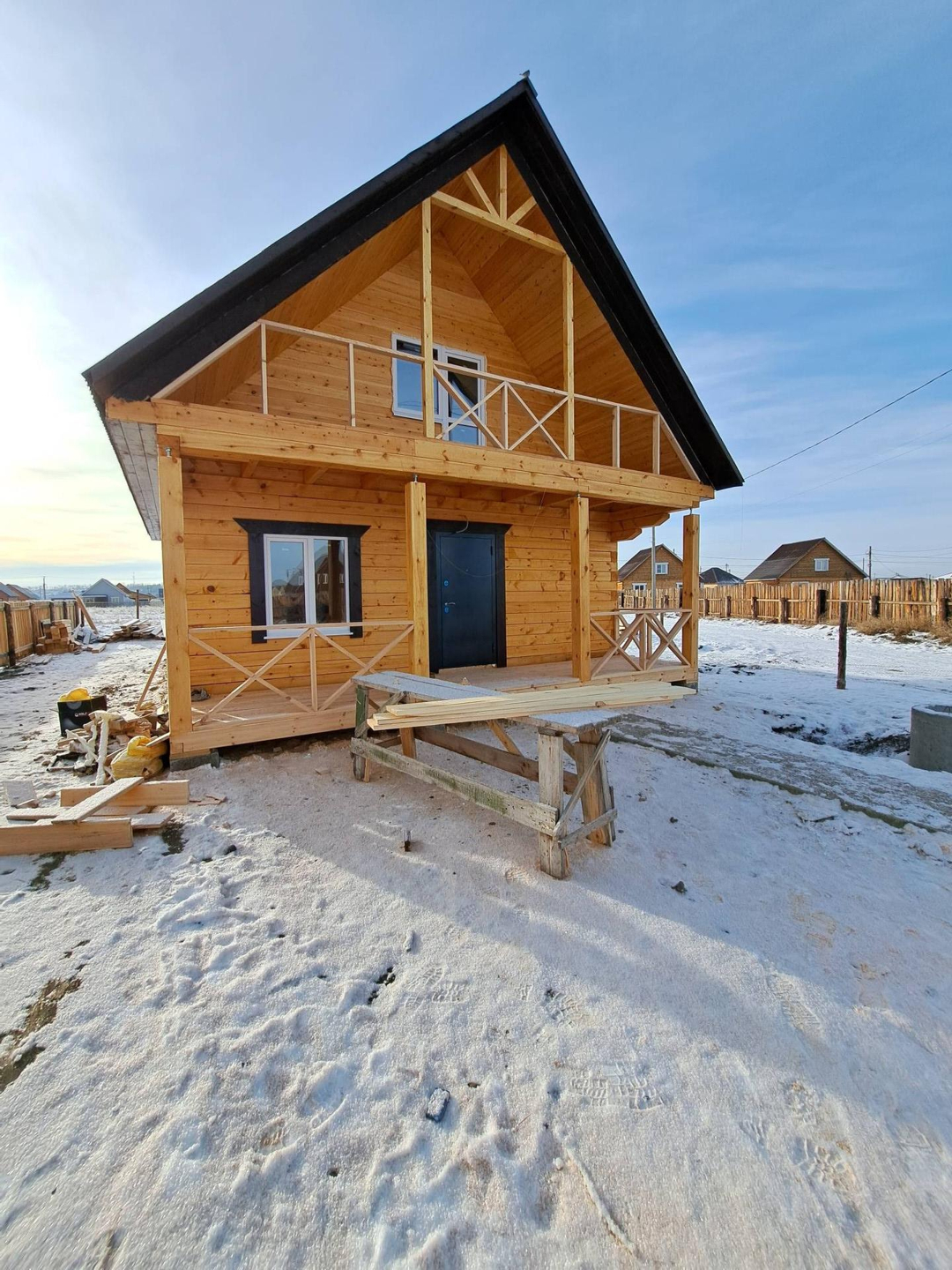 Строительно-риэлторская компания ООО"Талисман"предлогаетвашему вниманию, новый дом из бруса,без гаража,в доме 2 спальни,кухня гостиная,санузел,отдельно бойлерная,установлена качественная входная дверь,на полу плитка и линолеум,натяжные потолки по всему дому,с кухни большое понорамное окно и выход на большую терассу