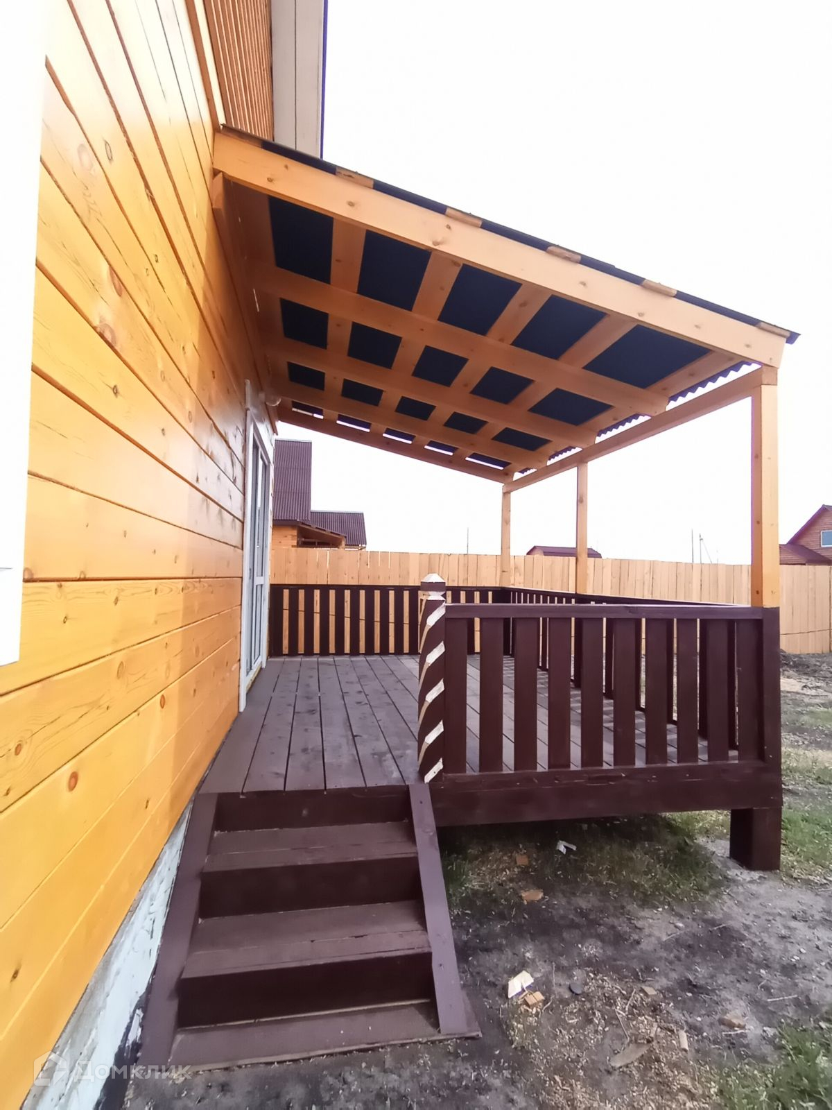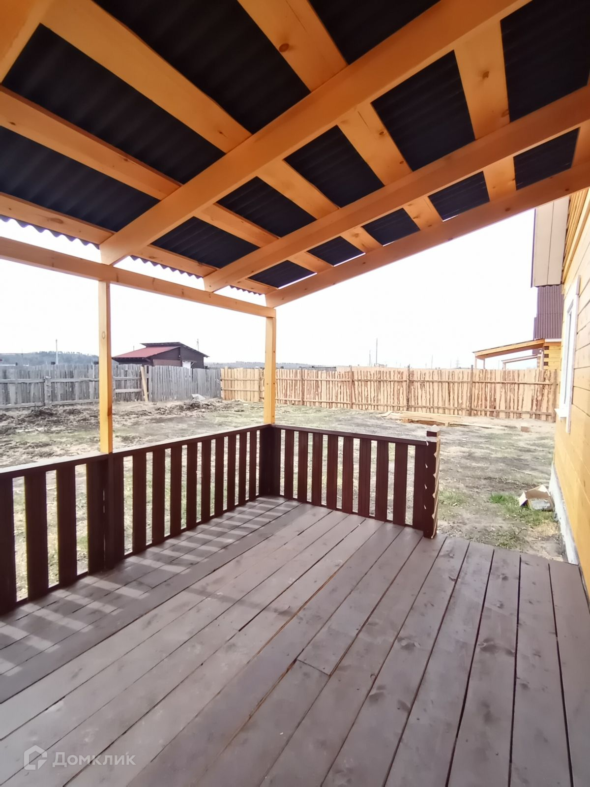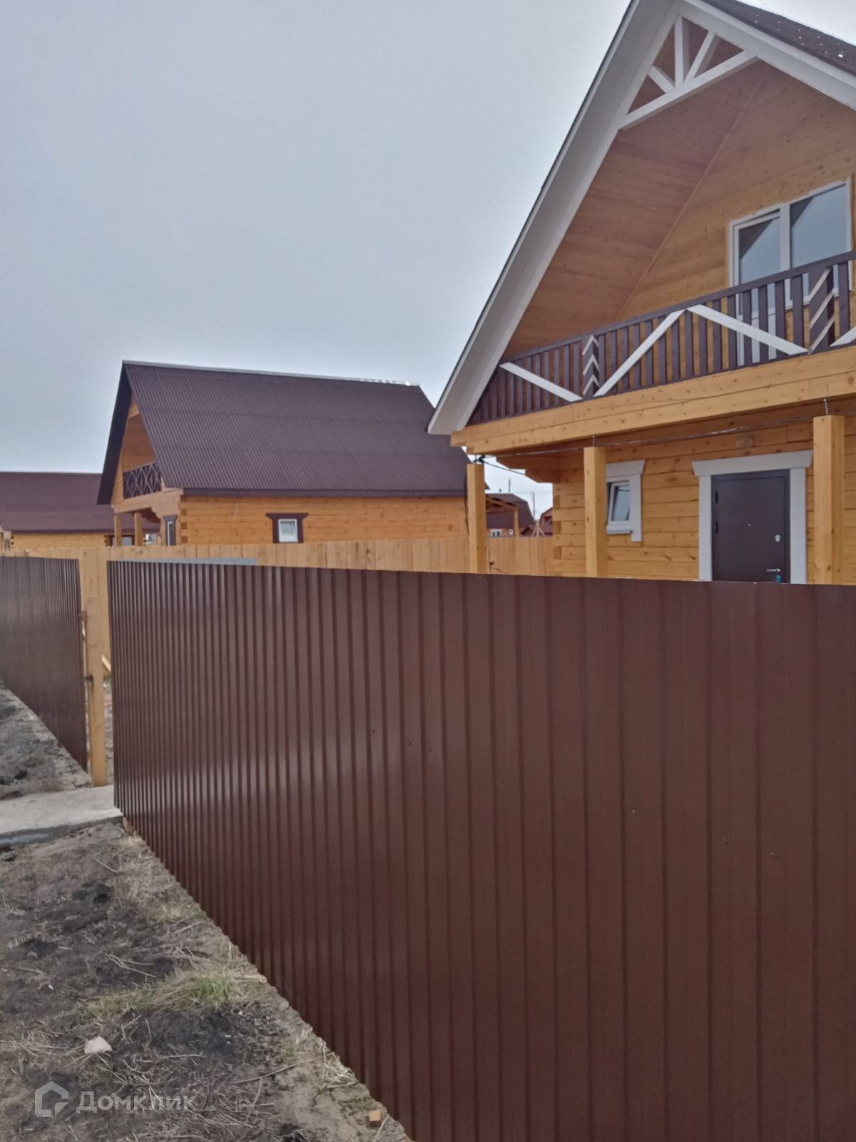 Огорожен забором, с лицевой стороны металлопрофиль.