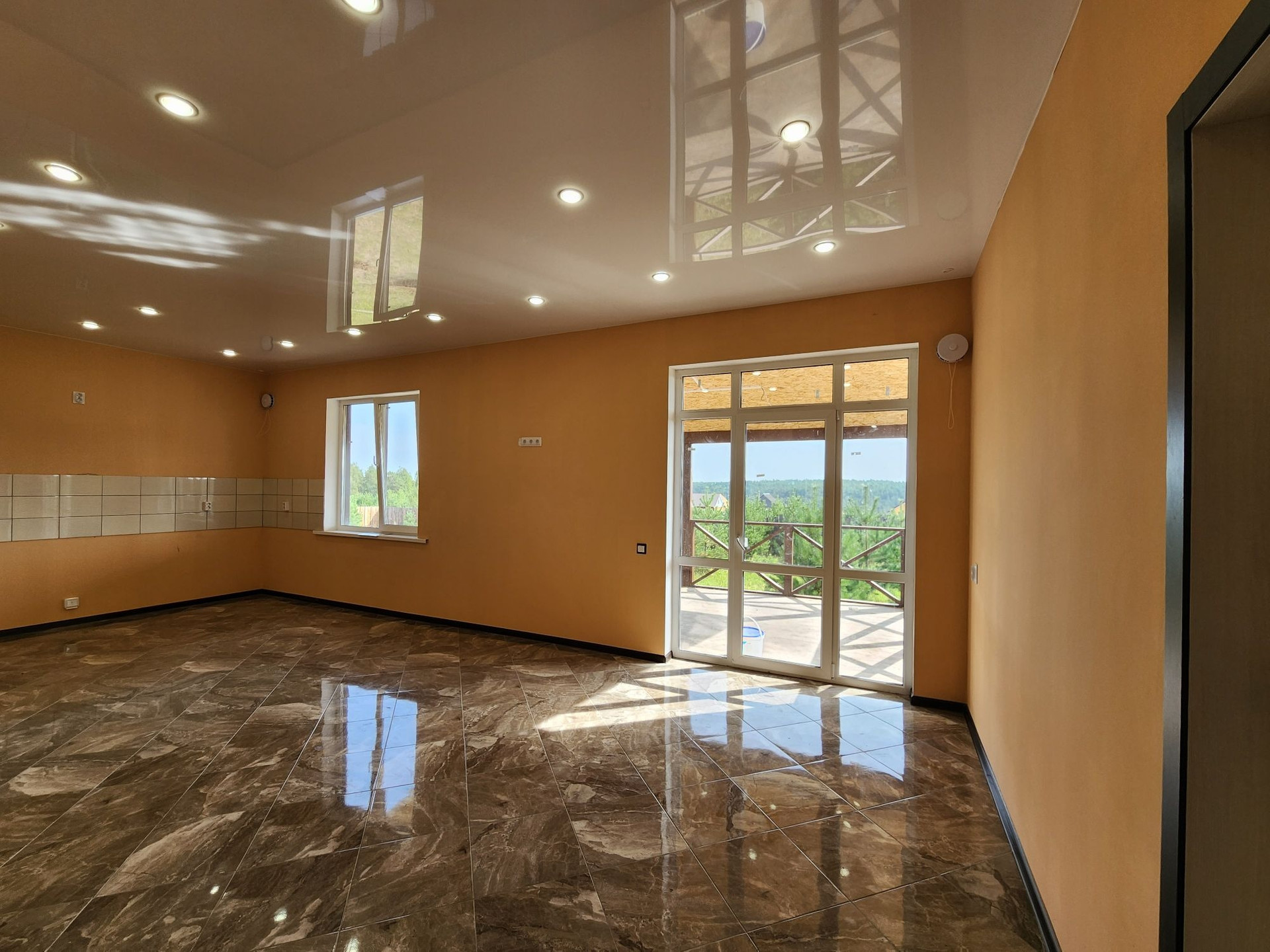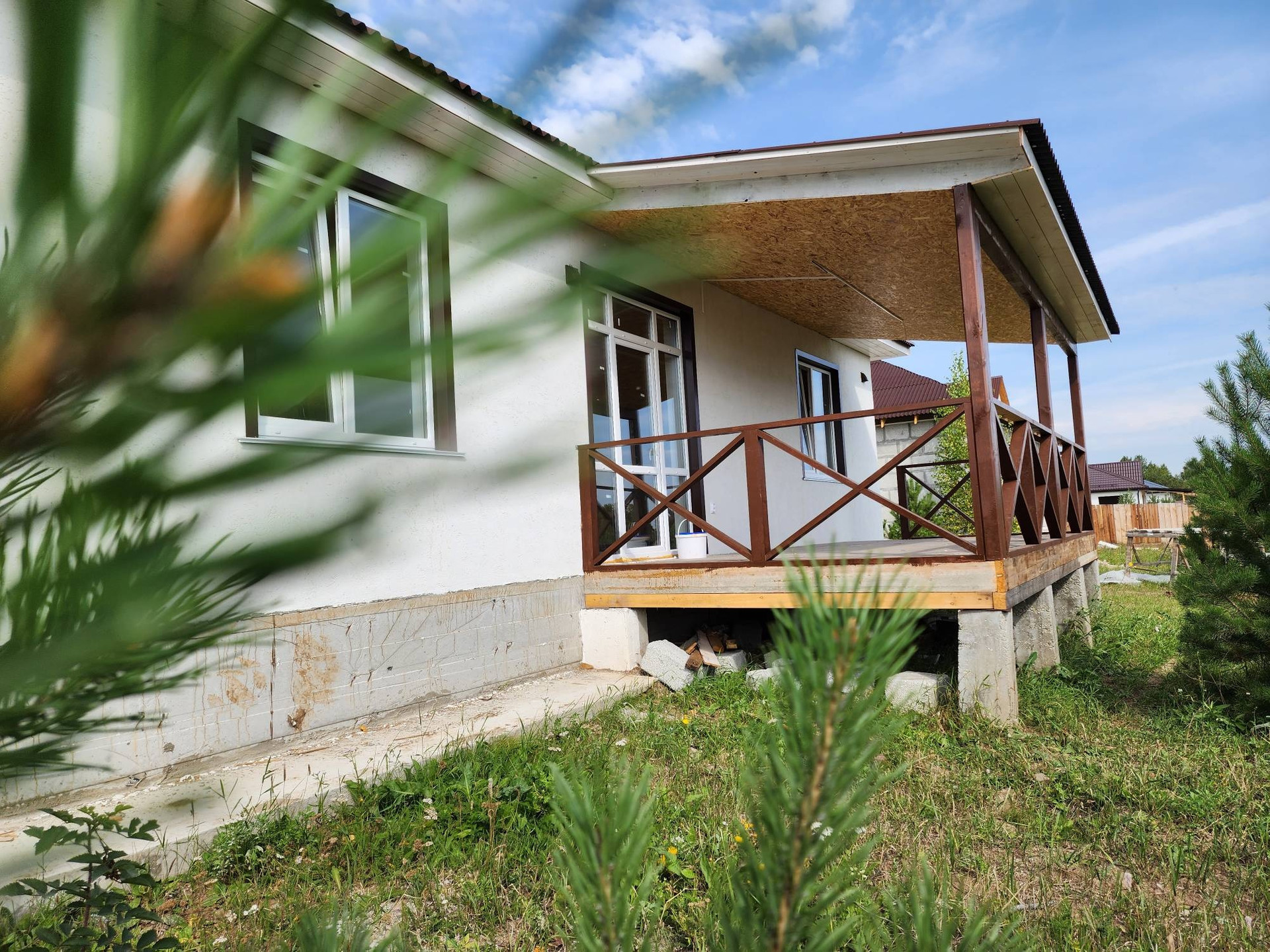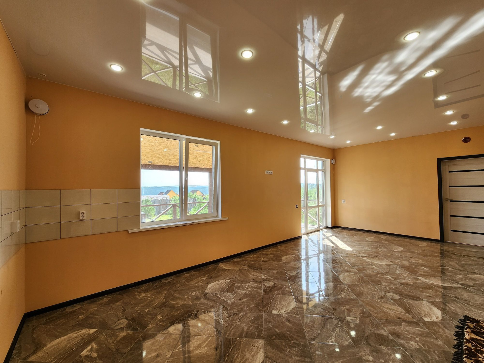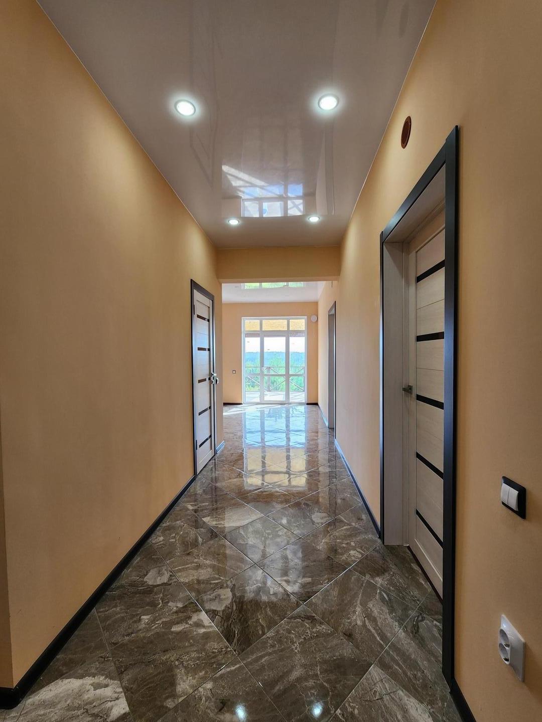 А теперь о доме: в нём расположены 3 раздельные и очень просторные комнаты, кухня-студия с выходом на террасу во двор, совмещённый сан.узел, гараж .