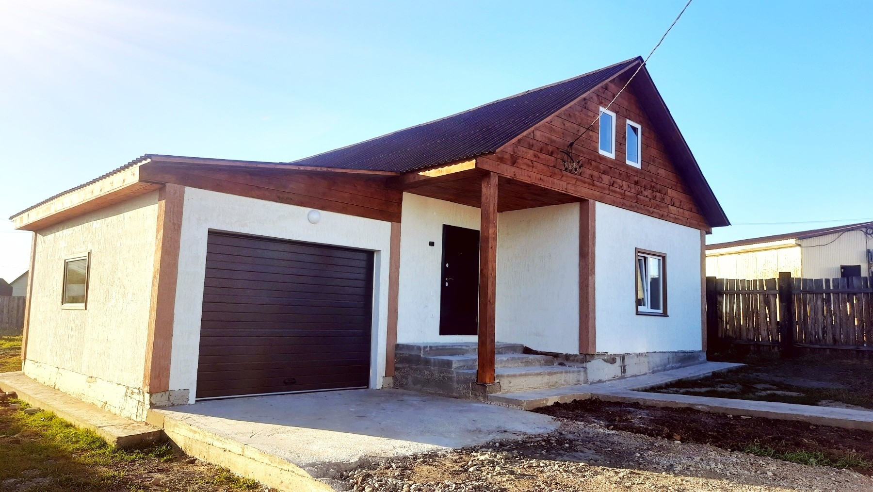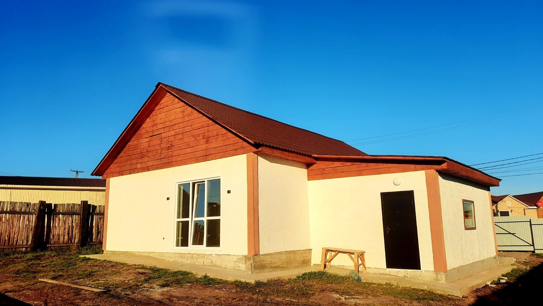 Участок : 10 соток ровный, сухой, правильной формы, огорожен забором (с воротами ) из профлиста. * Отличная дорога к дому * Септик 5 куб, своя скважина. * 2 придомовые террасы. * Забетонированная дорожка к дому. * Качественная входная дверь, окна ПВХ. * Отопление-теплый пол. * Электричество 15 кв. * Водонагреватель 100л. * Все оборудование на гарантии. * Отделка: натяжные потолки, на полу – плитка в гостиной, коридоре, санузле и ванной, линолеум – в комнатах.
