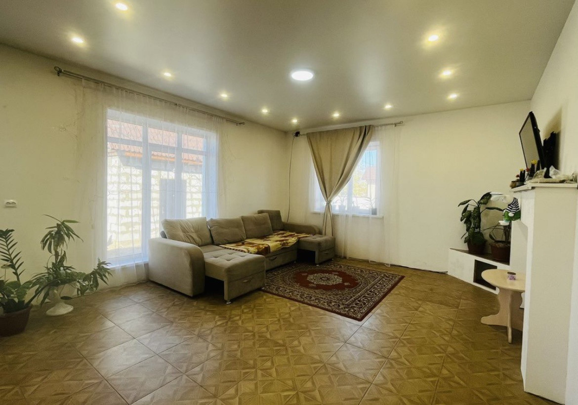 Планировка: Тамбур, коридор, котельная-прачечная, большой холл, 3 просторные спальни, сан.узел, огромная кухня-гостиная с панорамными окнами, большой подвал, потолки 3 метра, везде натяжные потолки с точечными светильниками, межкомнатные двери, качественно отштукатурен и отшпаклеван, отопление тёплый пол ( котёл 12 кВт), бойлер на 100 литров, скважина в доме, вокруг дома залита отмостка, перекрытие монолитное!, стены утеплены +5 см, обшит качественным сайдингом, электрика вся по ГОСТу 15кВт ( 3 фазы). Официальный свет.