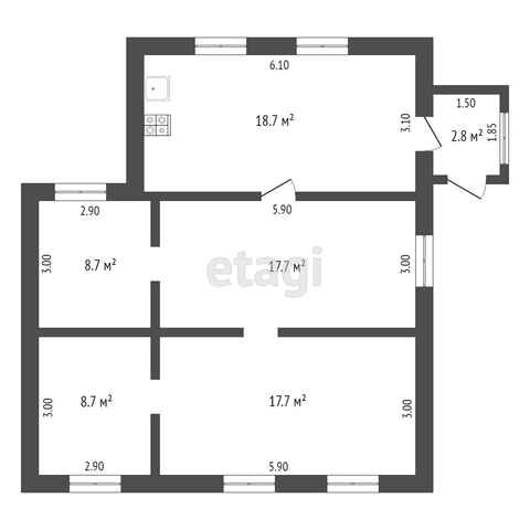 Общая площадь 74.3 м2