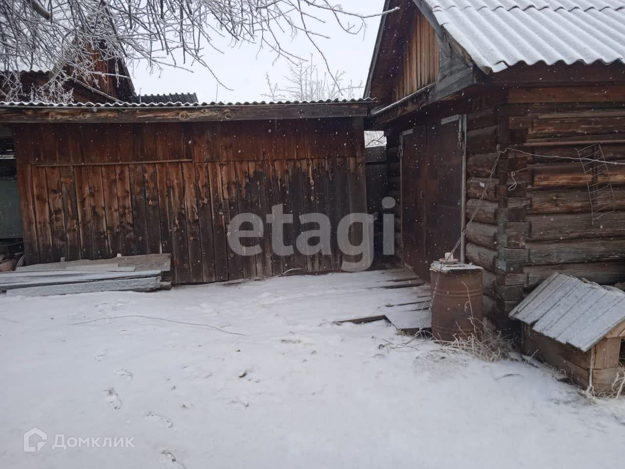 Большой двор, во дворе гараж из бруса, сарай, беседка. На участке баня, хозяйственные постройки, колодец, большой сад, дровник.