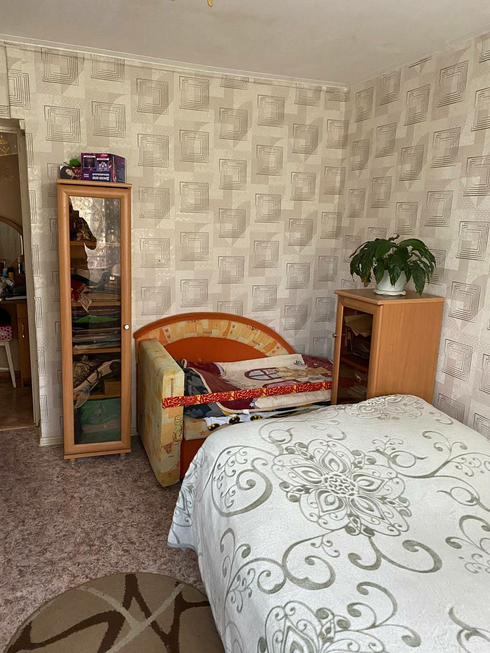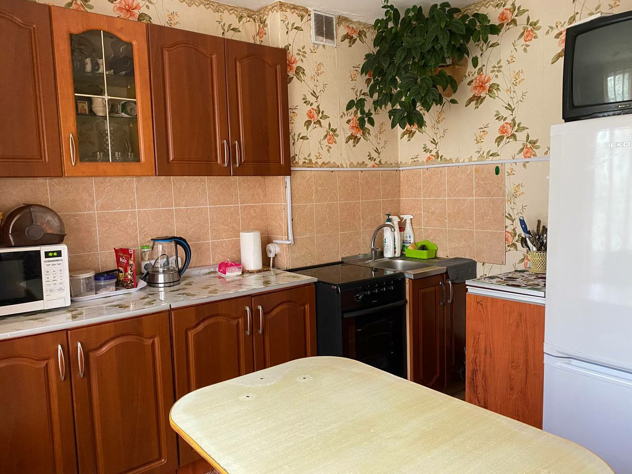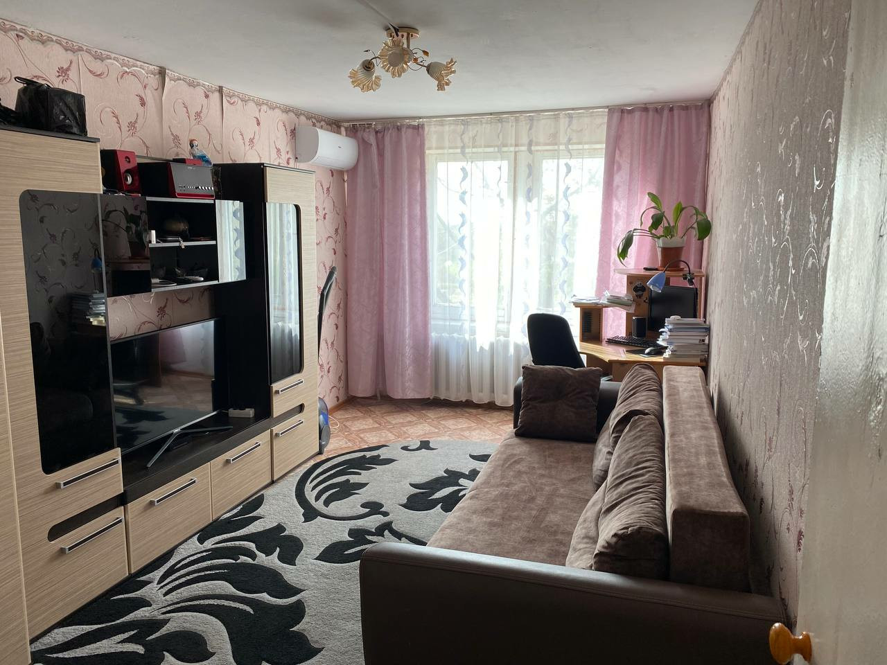 светлая, уютная,не угловая  квартира,тихое место,хорошие соседи,чистота в подъезде,имеется кладовая и небольшой огород рядом с домом(если нужен),кабельное и интерактивное тв,кондиционер, на полах линолеум, поменены трубы,проводка,ванна обшита пластиком