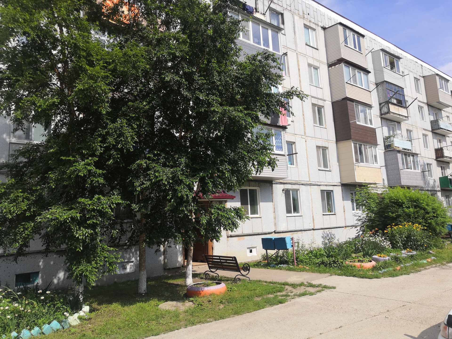 Благоустроенный двор. Рядом магазин продуктов, охраняемая парковка. Средняя школа, автобусная остановка в 5 мин. пешком.