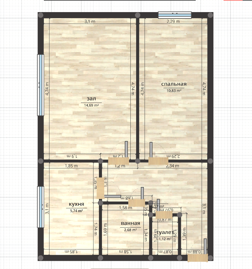 Общая площадь 37 м2
