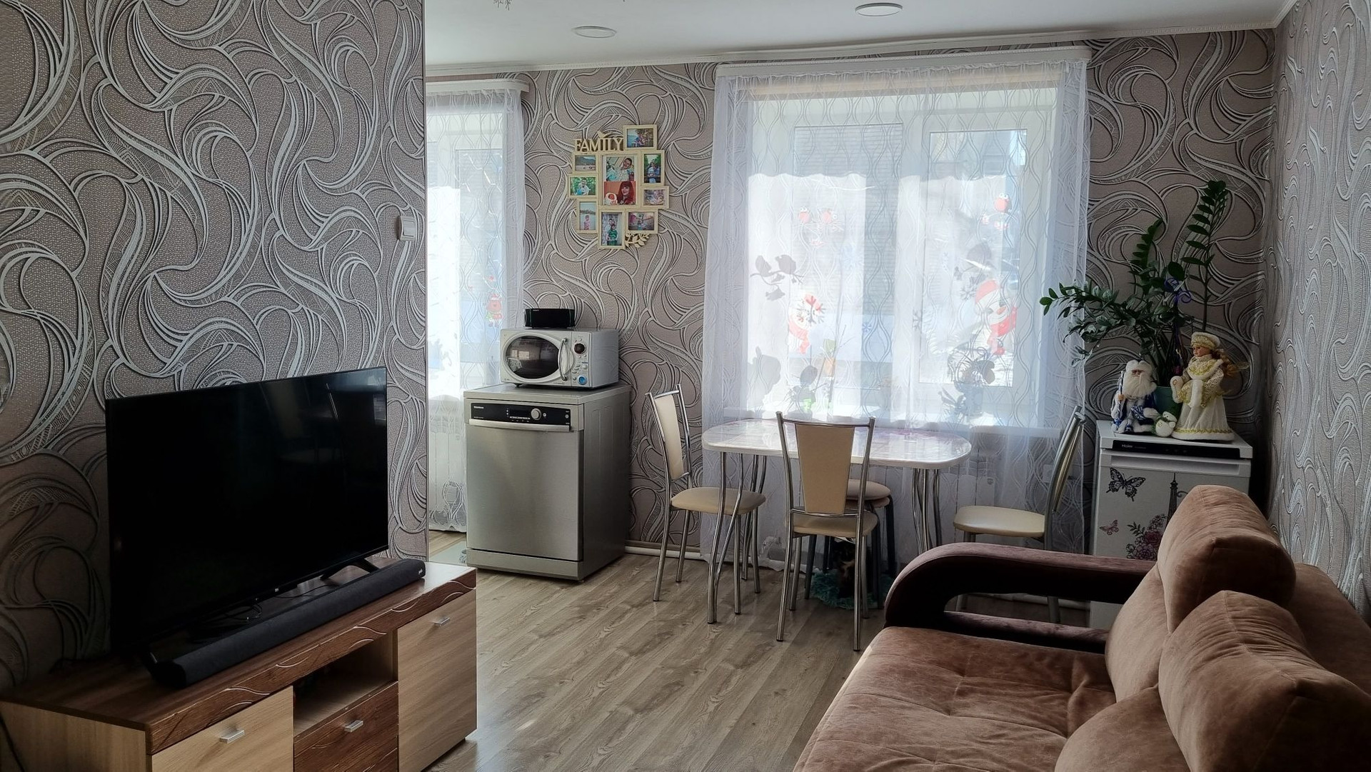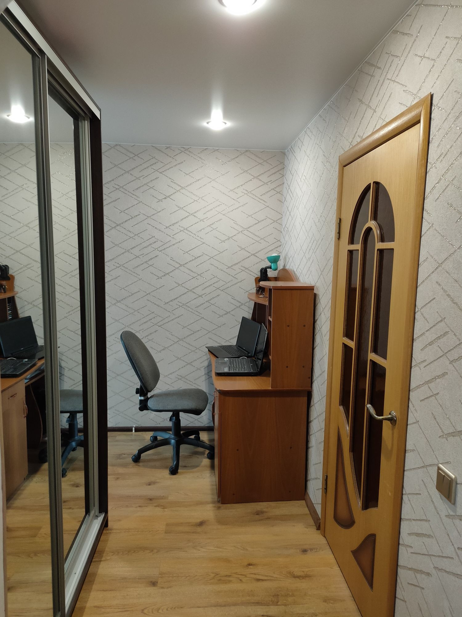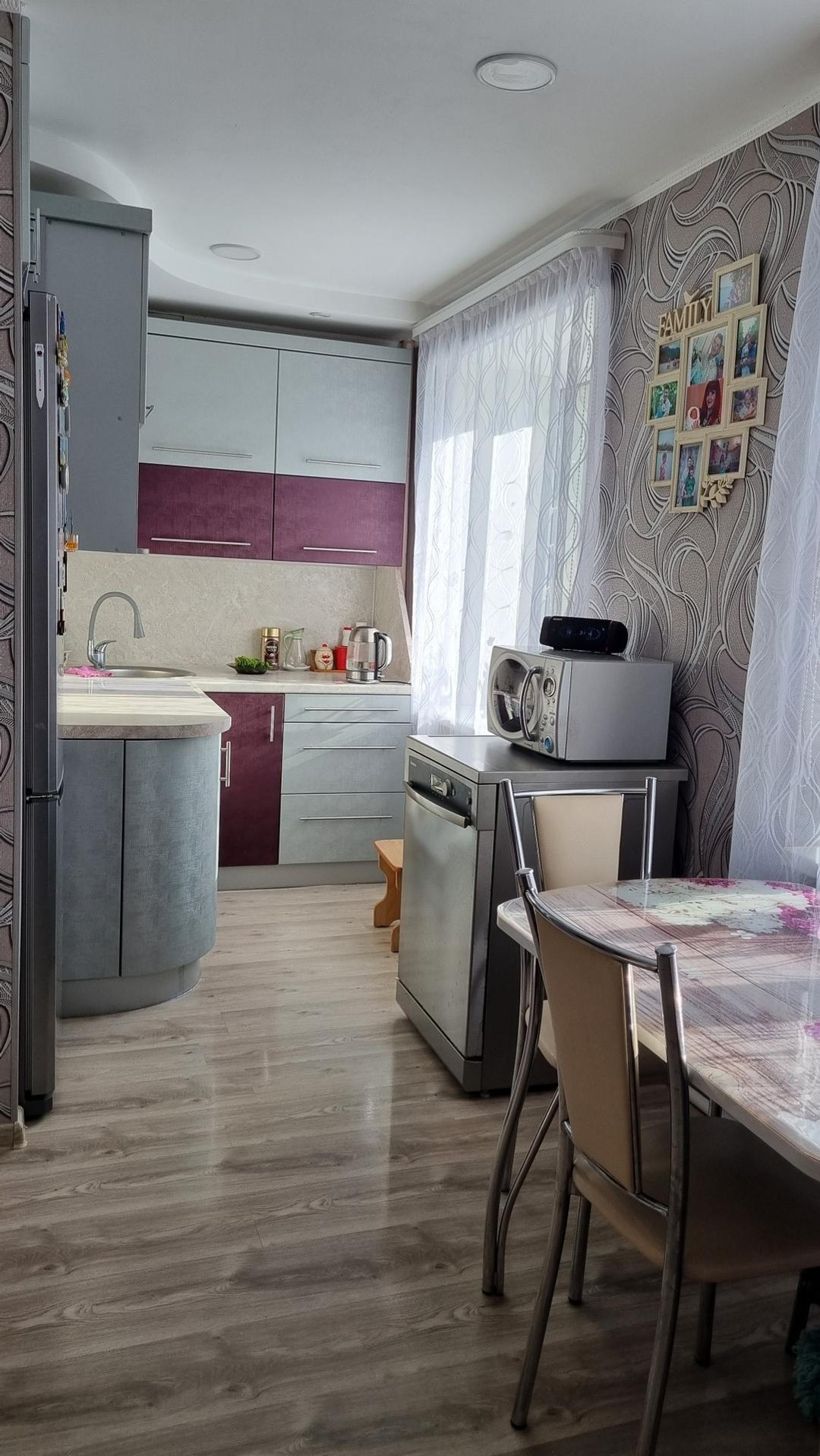 В квартире три года назад сделан отличный ремонт, заменены все радиаторы, поменена электропроводка во всех комнатах постелен качественный ламинат, встроенная кухня, натяжные потолки