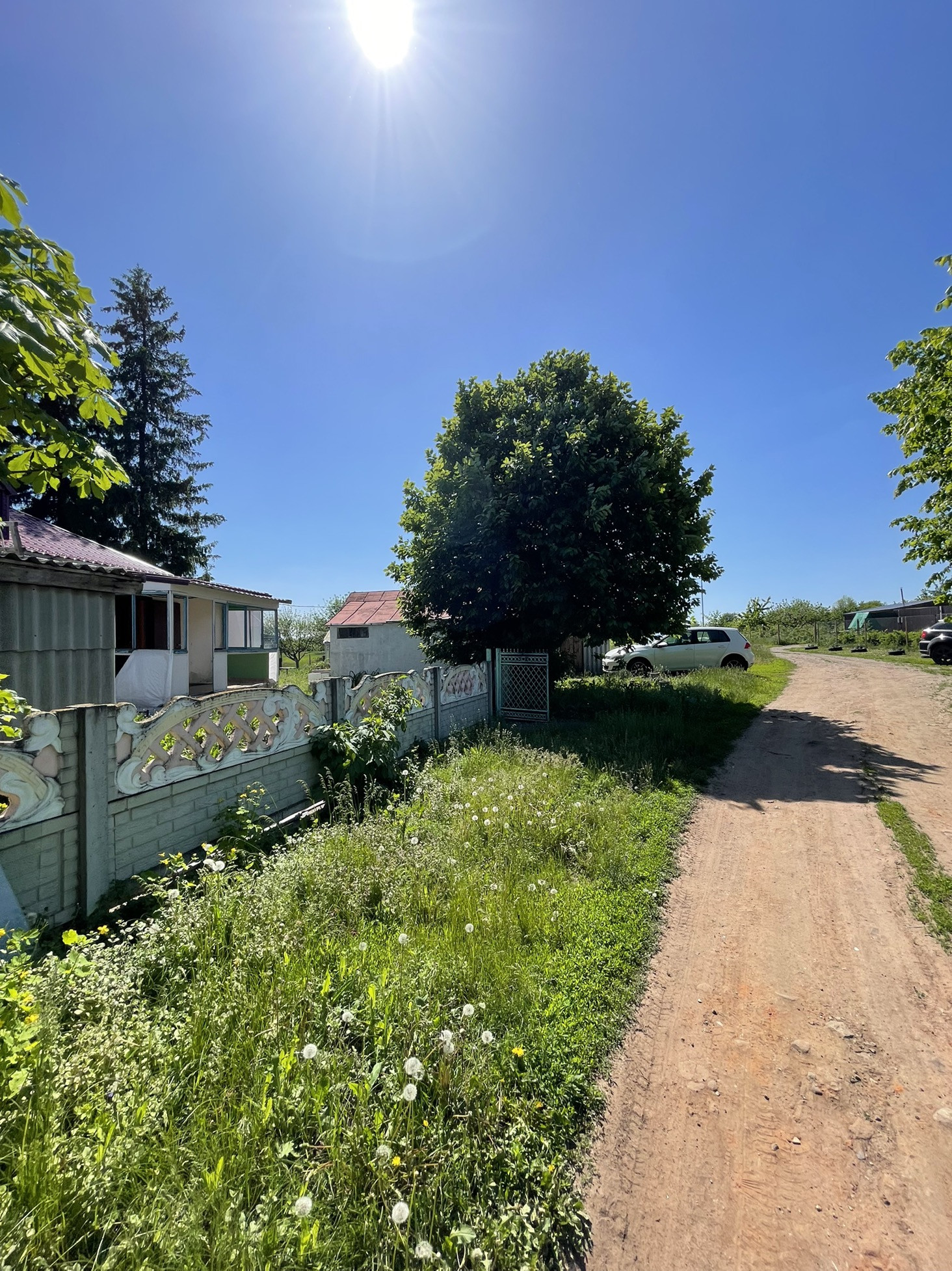 Участок угловой, при желании можно сделать два заезда.