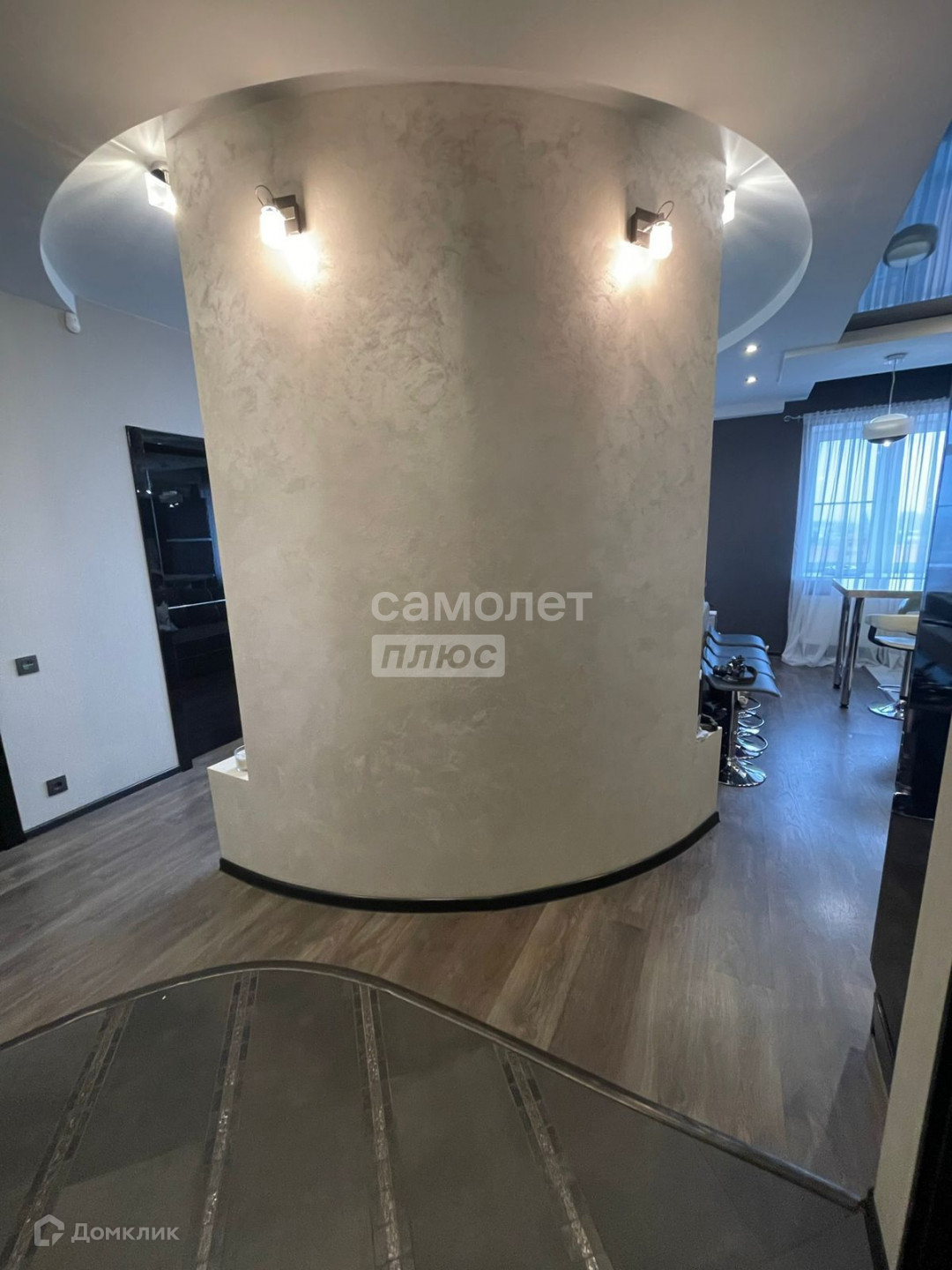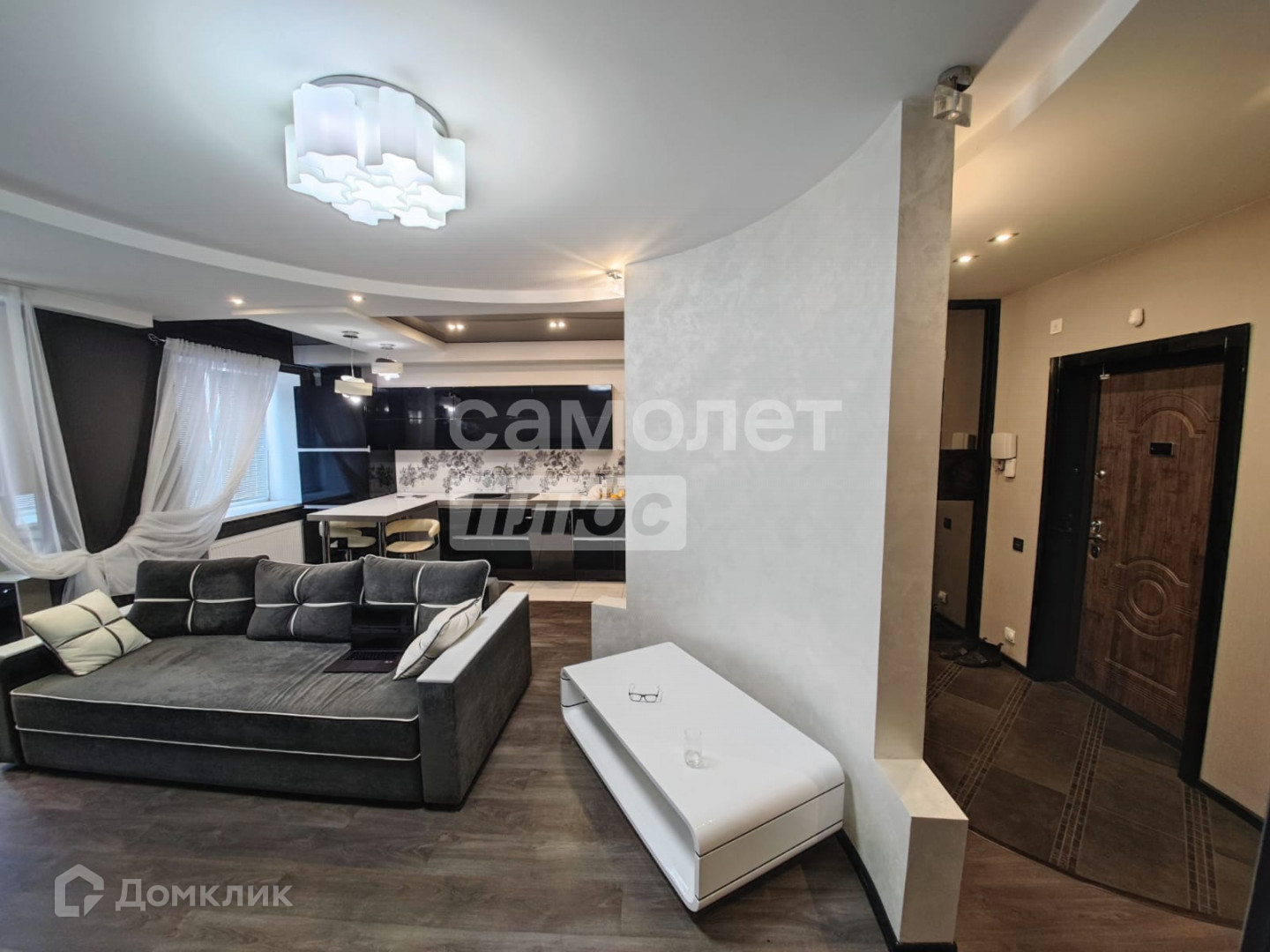 В квартире двухуровневые потолки, ванная комната совмещена с санузлом, на полу ламинат, в кухонной зоне кафель.