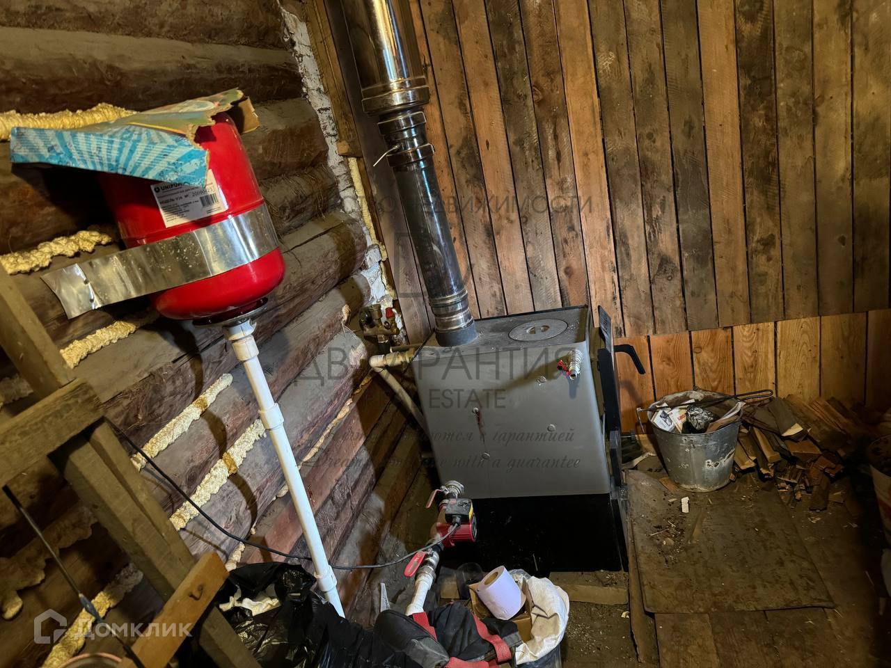 На территории участка также имеются удобства: дровенник, сарай, баня, гараж. Для комфорта зимой в доме установлено отопление печное и твердотоплевный котел. Есть биотуалет, проведена скважина.