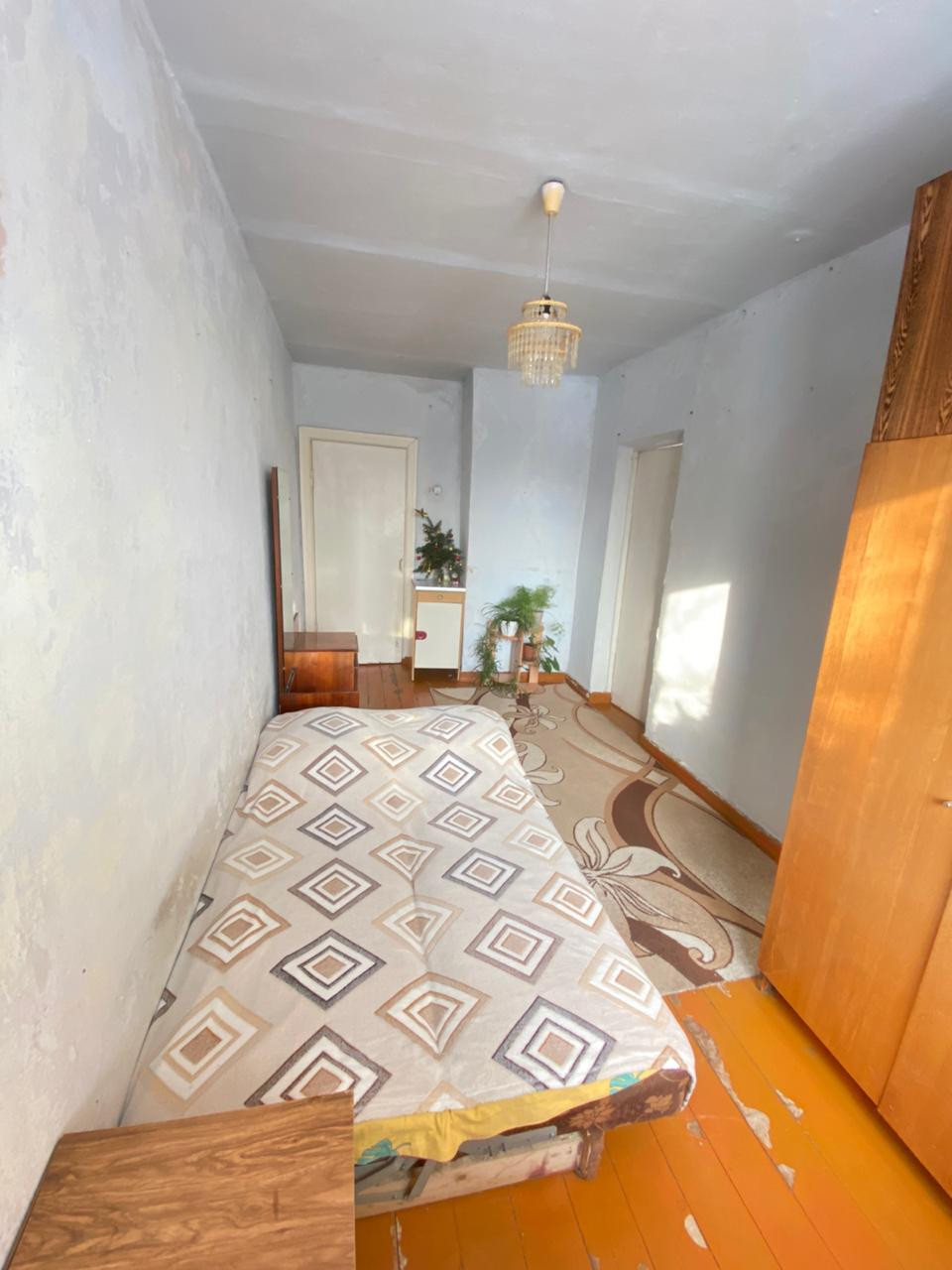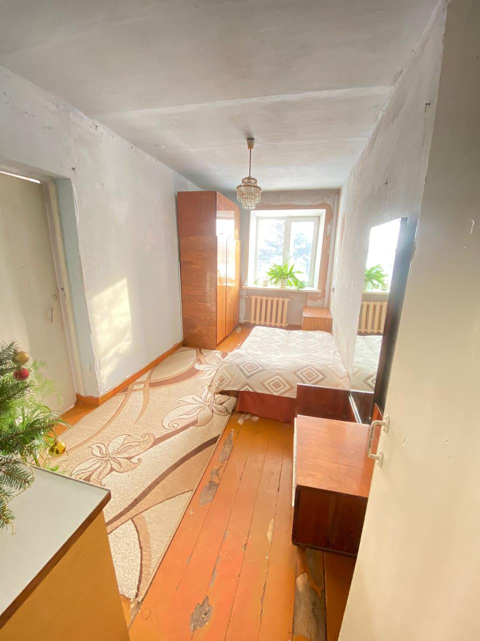 В квартире комнаты смежно-раздельные , состояние простое , стоят пластиковые окна , кухонный гарнитур , сан узел раздельный , туалет в кафеле , в ванной комнате установлен бойлер на 100 литров , заменены трубы ХВС и ГВС . Рядом есть земля под посадки .
