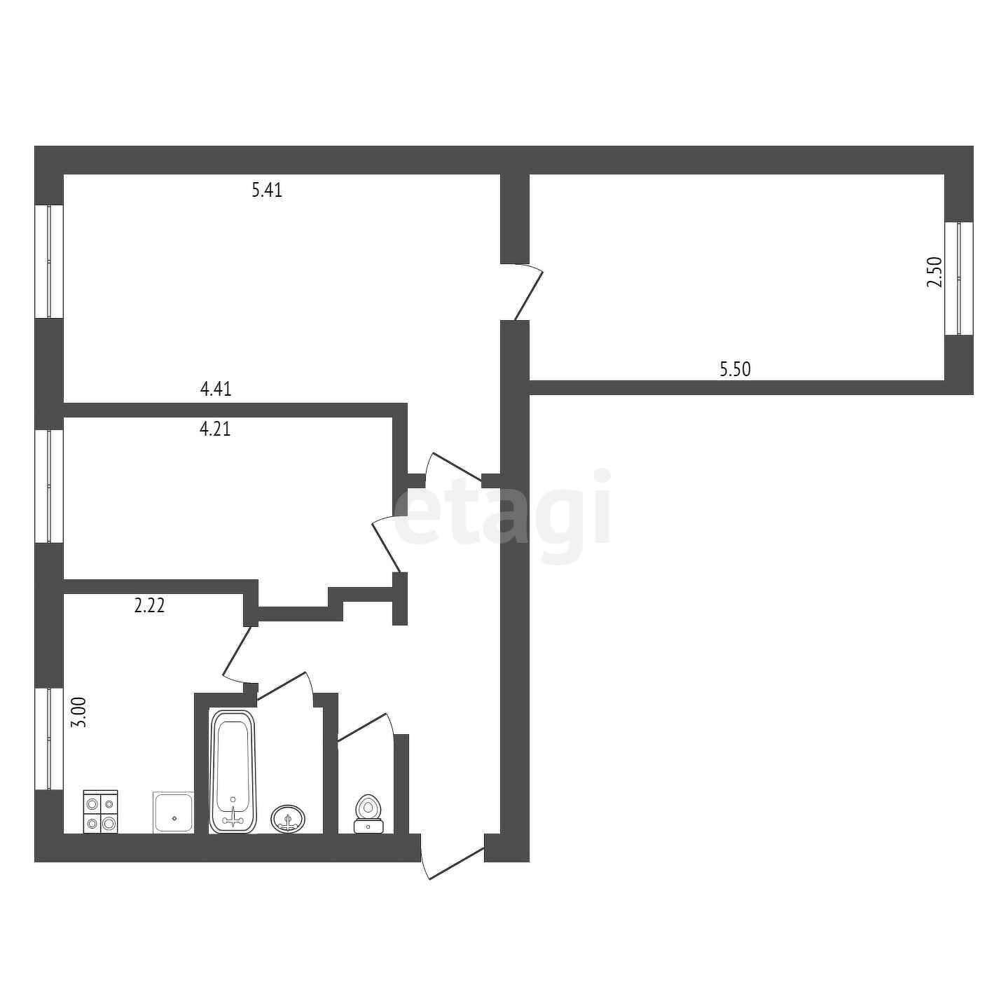 Общая площадь 57 м2