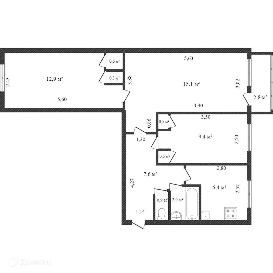 Общая площадь 60.4 м2
