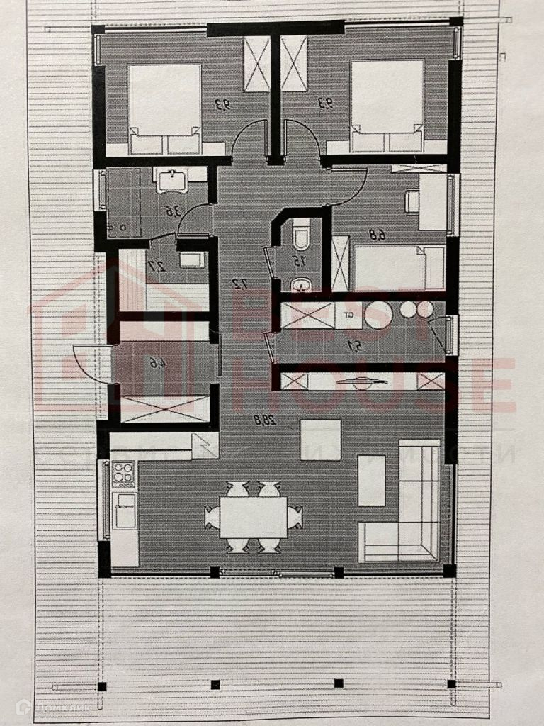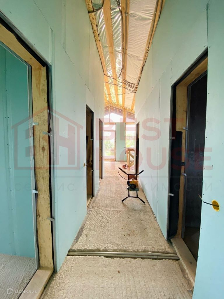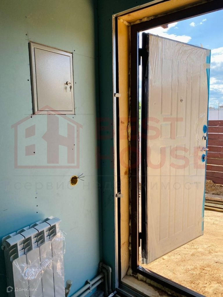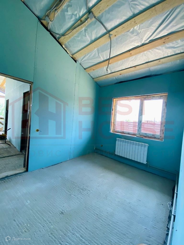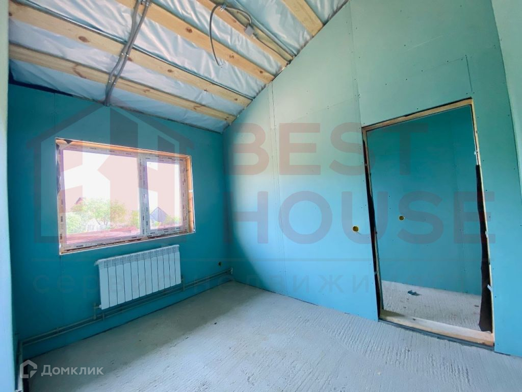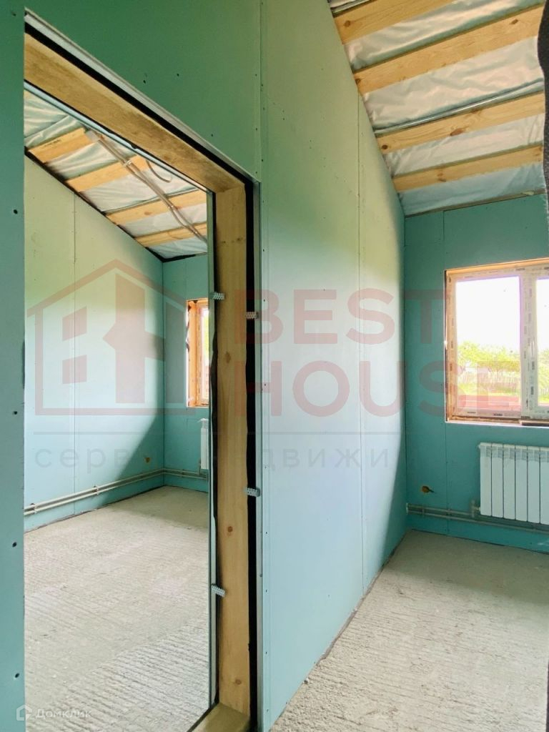 В доме есть две полноценные спальни, зал, совмещённый с кухней, два санузла, комната для сауны, комната - детская или кабинет, прихожая и хозяйственная комната для складирования.Технические аспекты: - Фундамент сделан не из грешных винтовых свай, а из полноценного, качественного бетона (производство НН). Буронабивные армированные сваи (глубина 1, 8м), лента, плита пола - всё утеплено экструдированным пенополистиролом.- Стены и крыша дома сделаны по каркасной технологии. Толщина качественного минераловатного утеплителя Роквул - 20 см! Этого более чем достаточно даже для самых жгучих морозов.- Снаружи дом сделан из плит ЦСП (цементно-стружечная плита). Внутри - уже сделаны стены из ГКЛ на металлической подконструкции. Всё, что осталось сделать - определиться с материалами отделки стен и полов и закончить внутреннюю отделку.- Внутри стен уже заложена вся электрика, выключатели, выходы под люстры и т.д.- В доме установлены радиаторы отопления.- Уже подключено водоснабжение, установлен новый колодец перед въездом на территорию.- Сделана канализация (3 бетонных кольца диаметром 1, 5 м).- Дом уже поставлен на кадастровый учёт и ведётся работа по догазификации. На данный момент делается проект подключения. Газ будет подключен в самое ближайшее время.- Уже установлены ворота и калитка с отделкой деревом.- Внутри дома уложена фольгированная пароизоляционная плёнка, которая отражает тепловое излучение и делает дом ещё более тёплым.- Пол веранды сделан из качественной шпунтовки.- Установлены водостоки и водоотведение под землёй, чтобы не было луж на входе в дом.- Крыша сделана из очень качественной металлочерепицы Металл Профиль Норман 0, 5 мм (по ГОСТу), с гарантией на покрытие 20 лет.- На участке очень удобно разместилась парковка для 1-2 автомобилей.