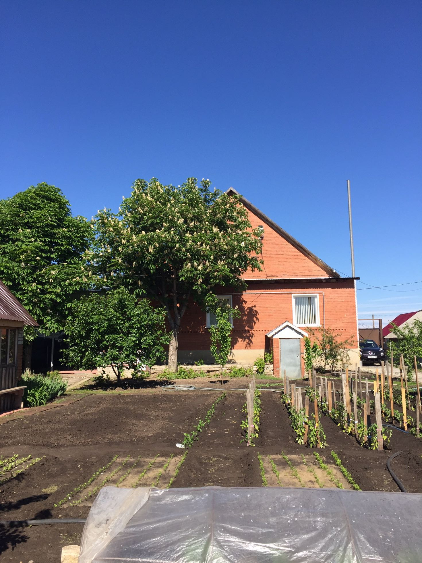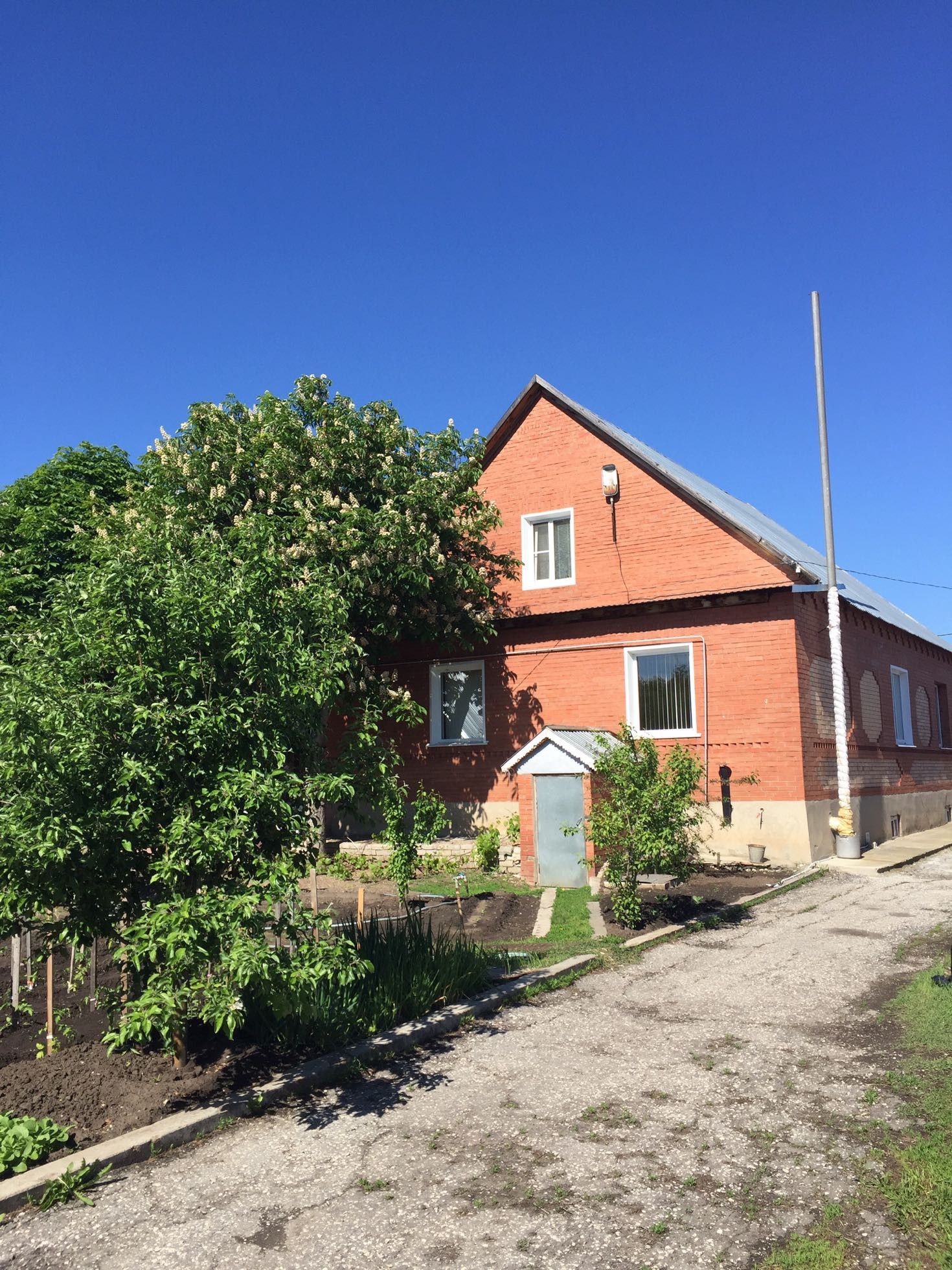 Территория дома 36 соток продумана до мелочей. Из дополнительных построек: 2 гаража (один из облицовочного кирпича, второй из шлакоблоков под два Камаза), баня из облицовочного кирпича с уютной террасой, 4 сарая, футбольное поле, сад с яблонями, вишнями, клубникой и множествами цветов. На территории многолетние ели.