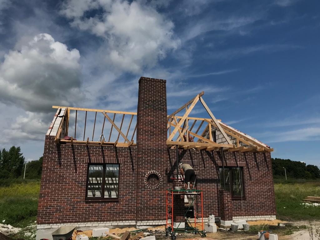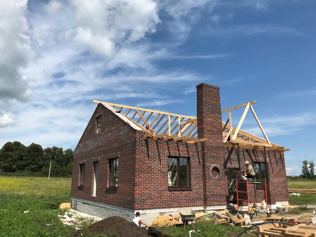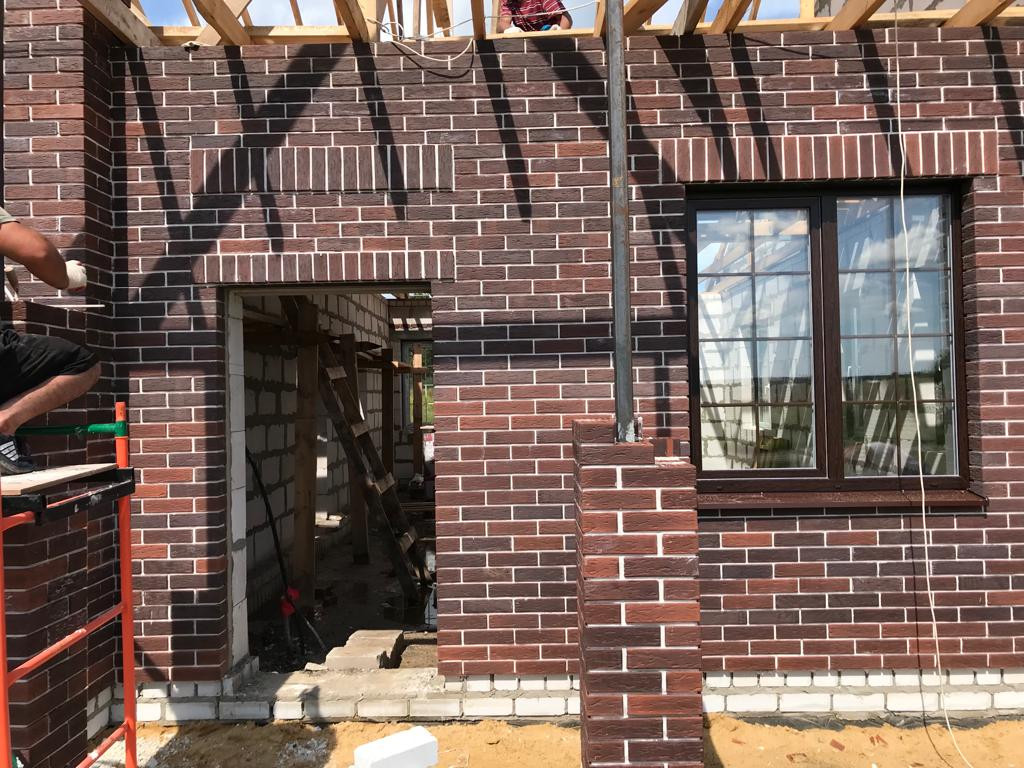 Из чего сделан дом: фундамент - шведская плита двойного армирования толщиной 30 см; стены - газосиликат Лиски плотность D500 толщина 250 мм; утеплитель - пенопласт 50 мм; снаружи - Воротынский лицевой кирпич (керамический пустотелый ГОСТ 530-2012 баварская кладка); расшивка швов - белый стекольный песок на белом цементе (потому что так красивее); крыша - мягкая кровля (она тише); перекрытия - дерево, стропила 150х50 мм; окна - ExProf профиль 70 мм, тройной стеклопакет (это тихо и тепло).
