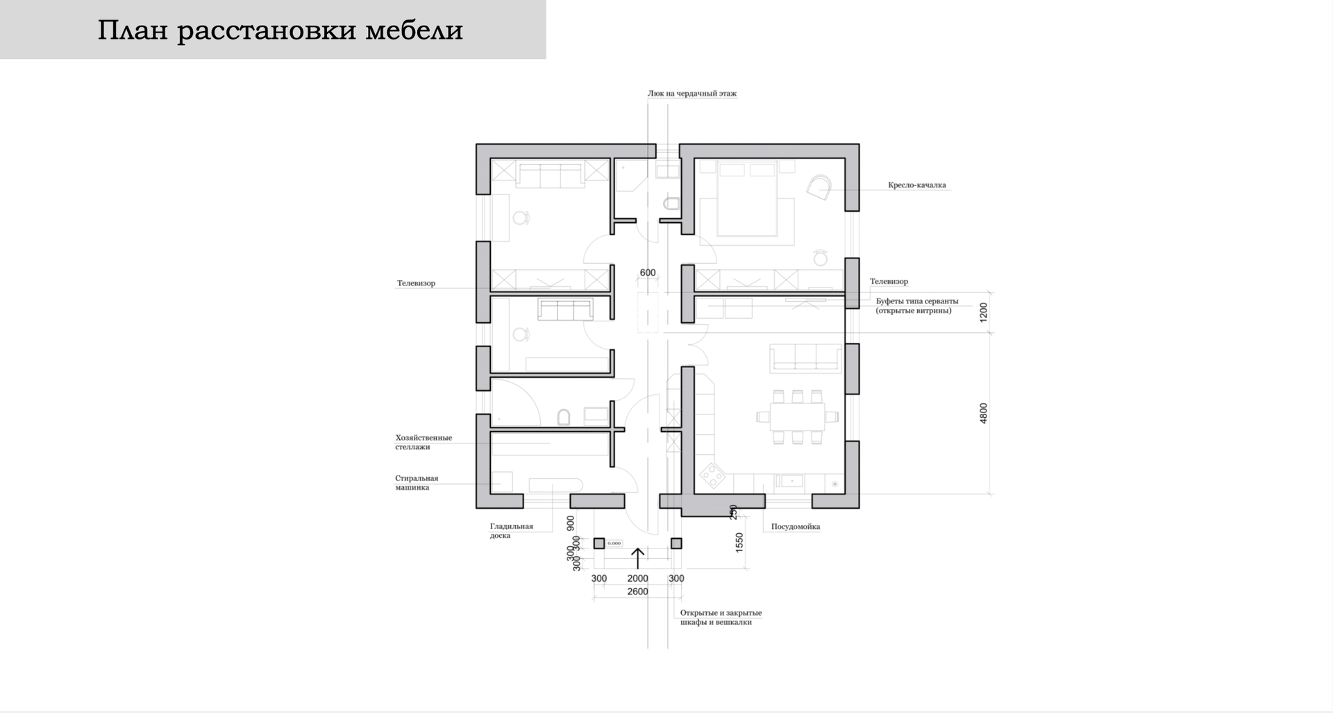 Планировка: 3 спальни, кухня-гостиная, 2 сан узла, постирочная, хоз помещение, холл, чердак (высота позволяет сделать его жилым - это +30 м2).