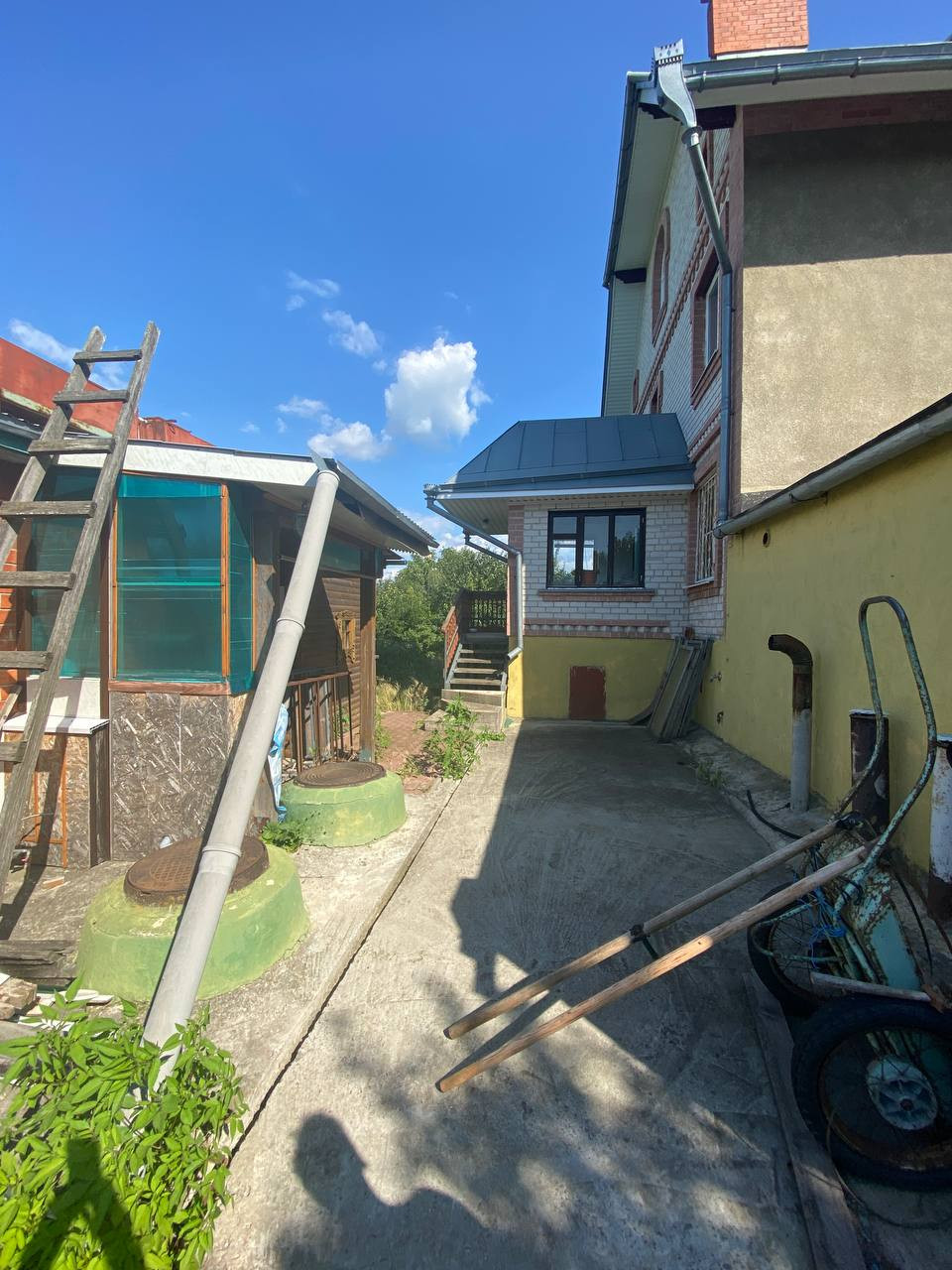 В доме 223,9 кв.м. жилой площади + 150кв.м. нежилой. На первом этаже: веранда с выходом на улицу, и вторая веранда с выходом в сад, кухня-столовая, ванная с с/у раздельные, две спальни, коридор. На втором этаже: кухня, гостиная, совмещенная душевая с с/у, две спальни. На третьем этаже: просторная мансарда с отличным видом на сады, поля и Дон. В подвале: две котельные, глубокий погреб из трех зон для хранения, кладовые, место под сауну и основа под бассейн, кабинет столяра. Гараж для двух авто с ямой. В саду: летняя кухня с зоной барбекю, раздельный душ и c/у, теплицы, емкости для хранения воды, огород и сад со всеми плодоносящими кустарниками и деревьями.
