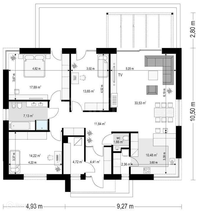 Полезная площадь дома составляет 116,77 м2.