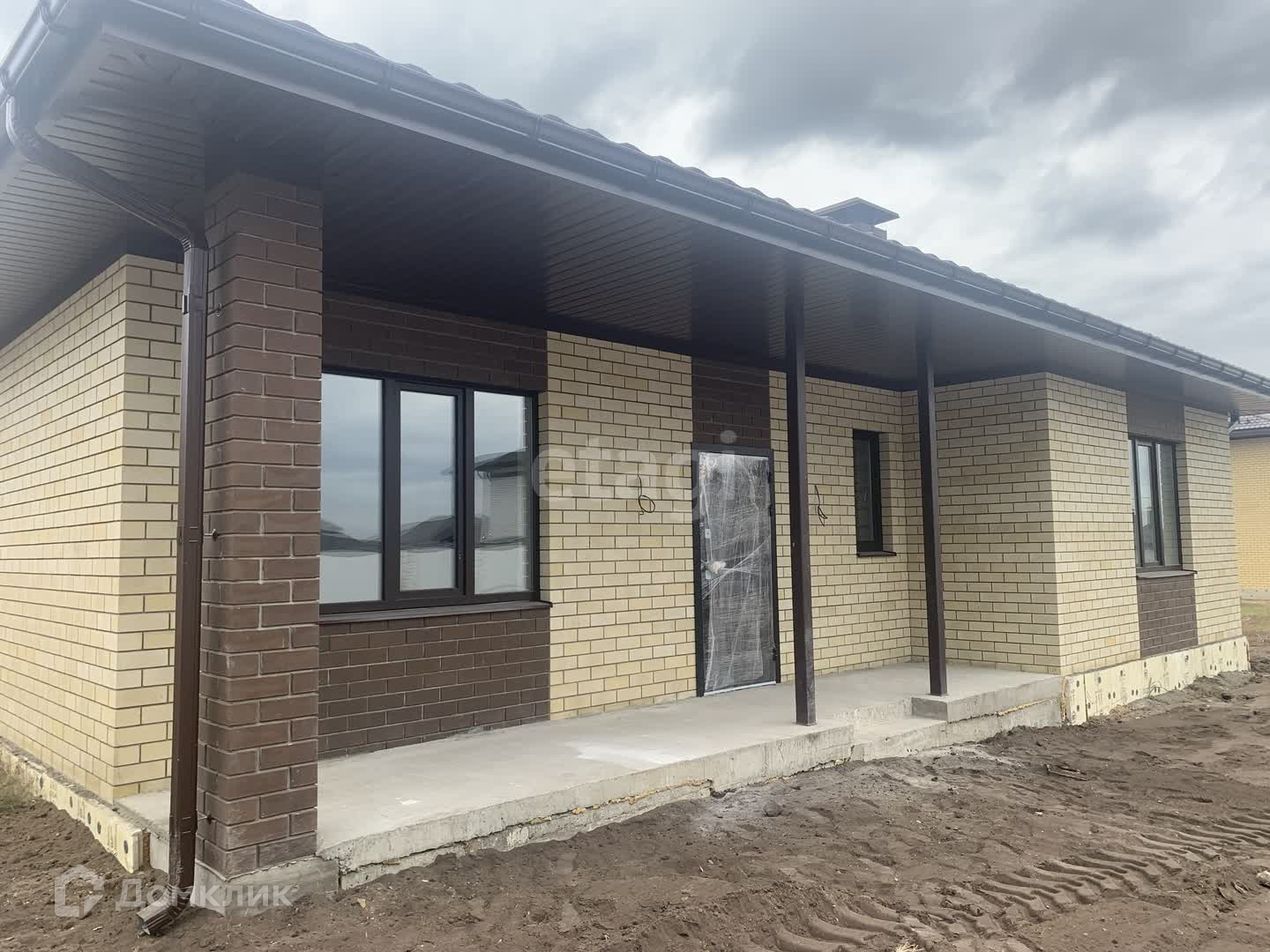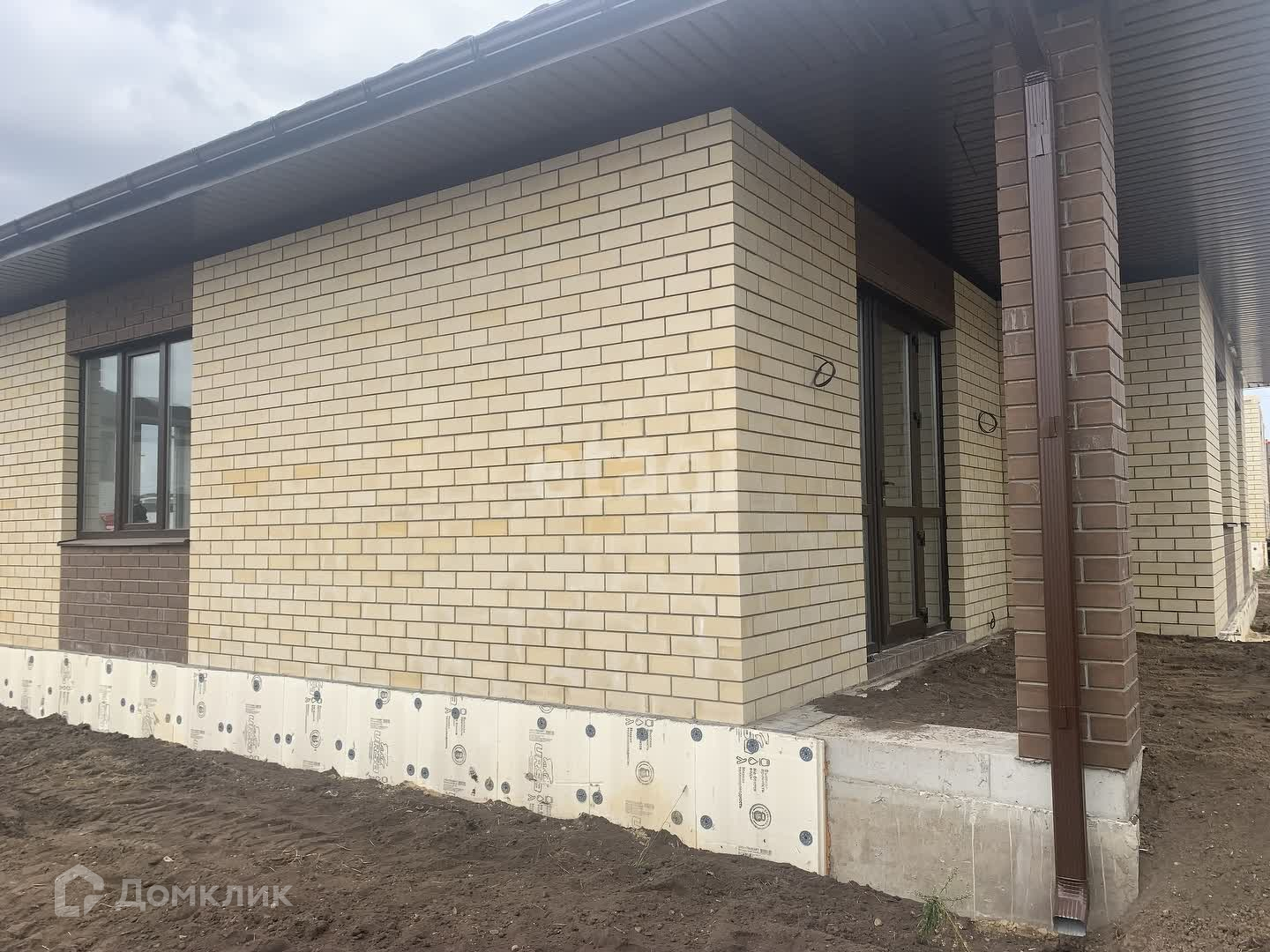 Фундамент лента (0,5 на 1 метр, арматура 12 мм) и монолитная плита, теплый пол, стены газосиликатный блок, межкомнатные стены кирпич, утеплитель минвата, снаружи облицовочный киртпич, крыша мягкая черепица.