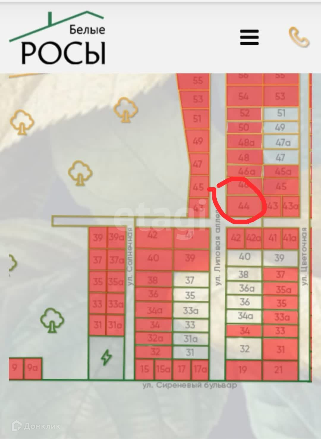Продается угловой земельный участок 15 соток в перспективно развивающимся КП Белые Росы, Липовая аллея уч.44