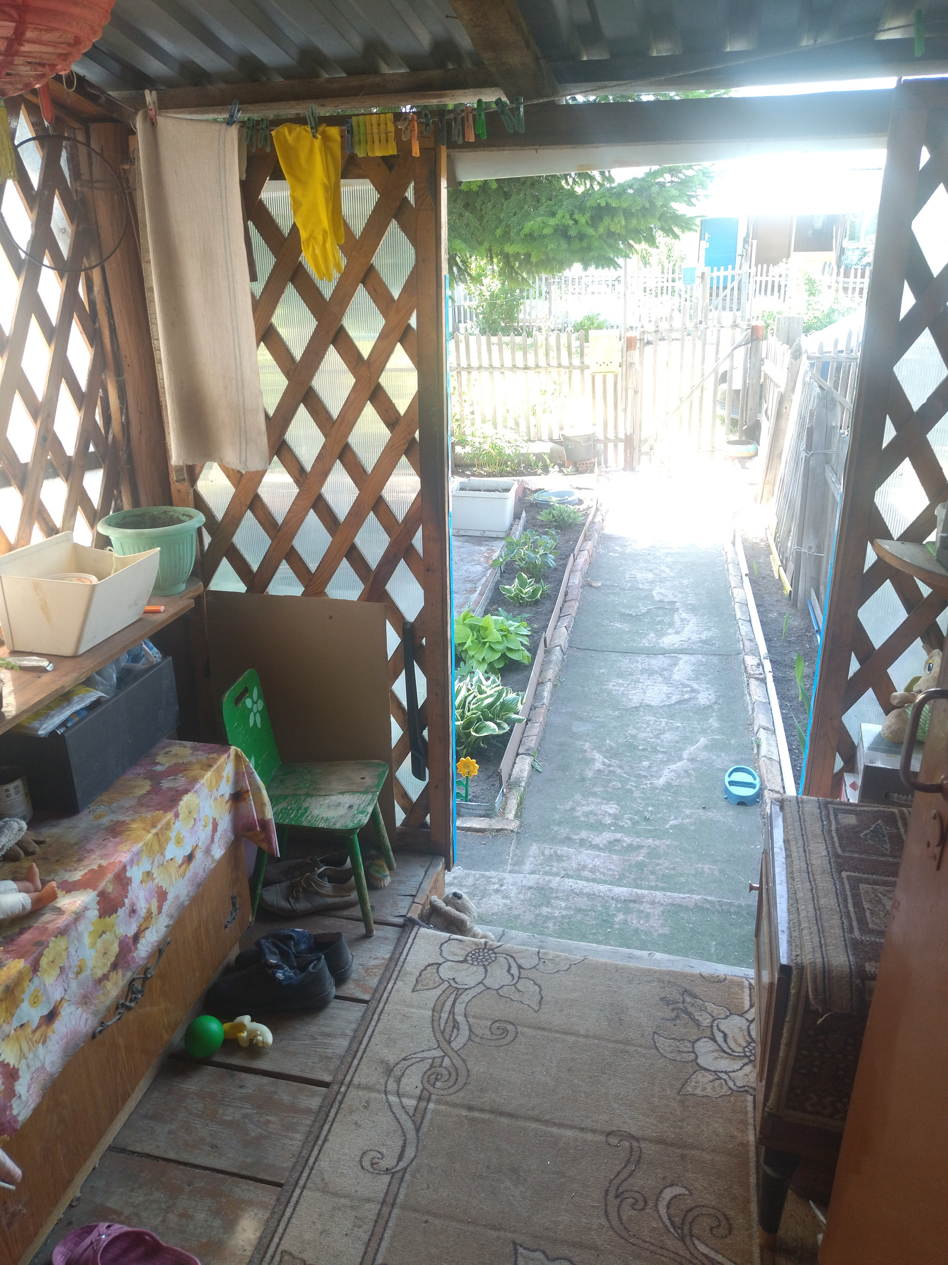 Под окнами - ухоженный огород, насаждения.
